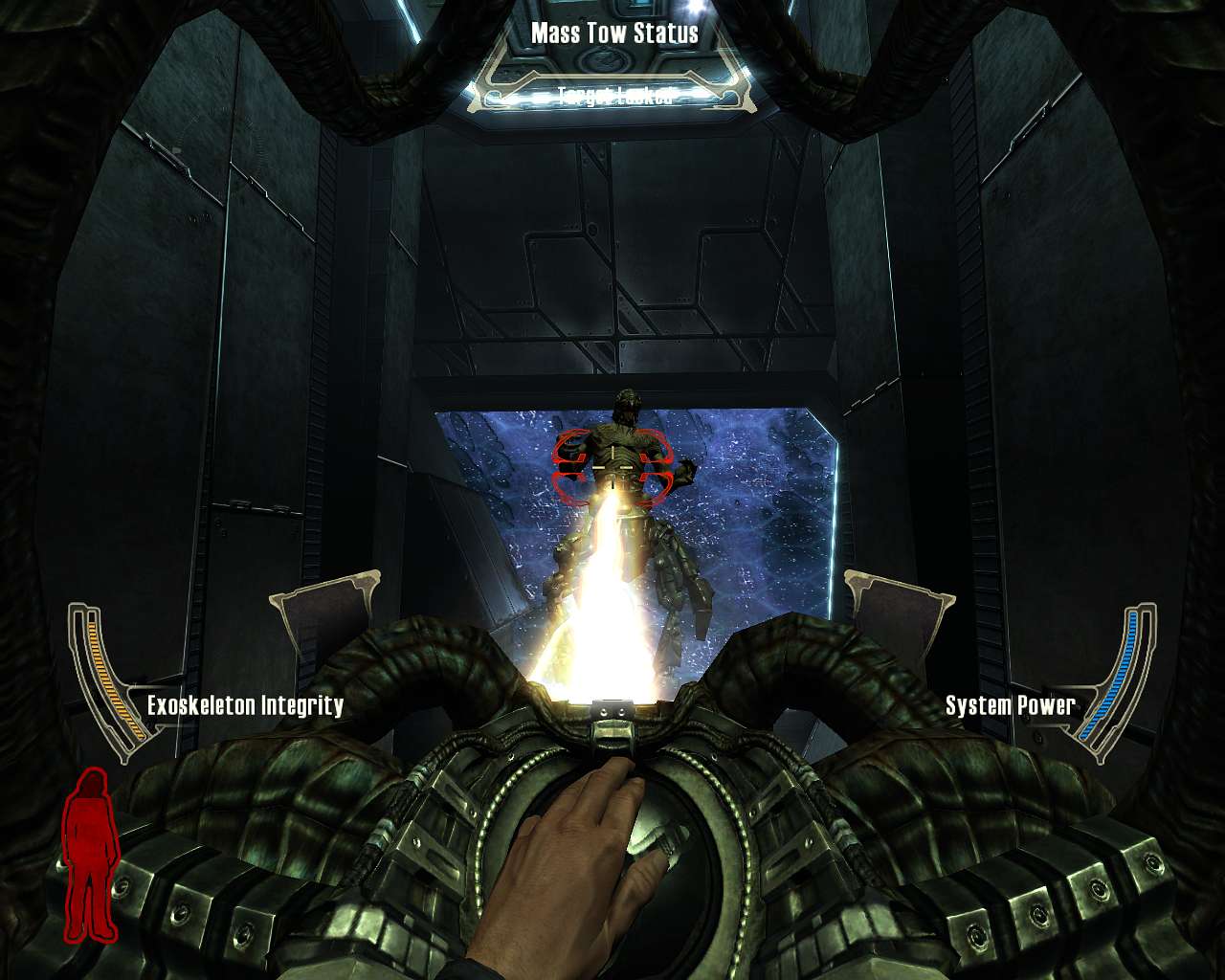 Одним из самых интересных моментов стали миссии в транспортнике. Материализующийся на специальных станциях экзоскелет позволяет Томми летать, стрелять, таскать предметы и противников. Можно притянуть врага к носу, расстрелять в упор, или просто швырнуть в пропасть. Подобные издевательства над извергами изливаются бальзамом на кровожадное индейское сердце. Пилотировать инопланетное корыто удобно. В меру маневренный аппарат позволяет избегать вражеского огня, лететь вправо, влево и даже назад. Во время полета забавно наблюдать, как Томми управляет этой штуковиной - рука плотно лежит на полусфере с отпечатком инопланетной ладони, наклоняет ее вправо и влево, вперед и назад, придавливает и оттягивает, чутко реагируя на движения пользователя по ту сторону экрана.