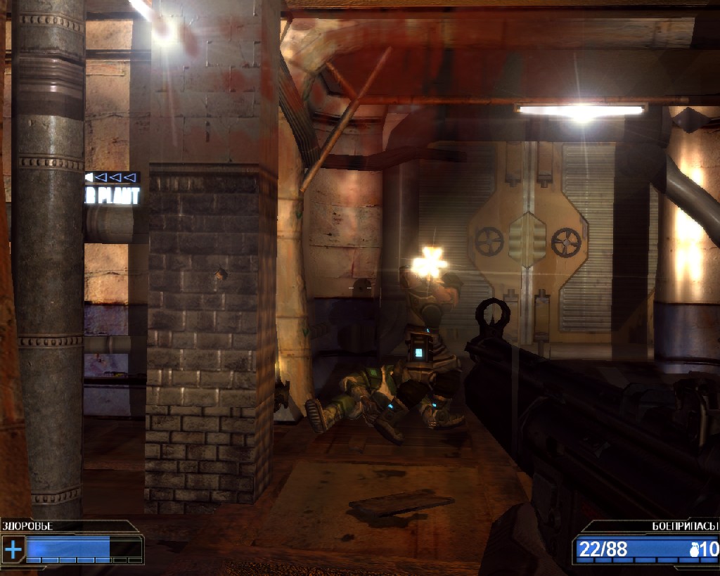 Картина нерадостная, хотя пару лучиков света всё-таки имеется. Во-первых, в игре есть два вида энергетического оружия, которые не требуют перезарядки. Вооружённые им наёмники палят без остановки. Во-вторых, строителям базы всё-таки удалось изыскать внутренние резервы и вместить несколько огромных залов. В больших помещениях на героя со всех сторон накидывается значительно больше врагов. Причем вести себя они начинают более нагло: перебегают с места на место, прячутся за укрытиями, вспоминают, что у них есть гранаты. В общем, хотя бы создают видимость сопротивления. Жалко, что таких моментов совсем немного.