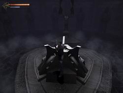 Арсенал впечатляет своим разнообразием: Типа Волшебный Меч, сильно смахивающий на лампу дневного света и пистолет с неограниченным запасом патронов и без прицела (два раза кю!). Теоретически, можно подбирать оружие, оставшееся от павших врагов, однако в инвентаре оно не сохраняется, характеристик никаких не имеет, а наш аватар при любом удобном случае бросает его на землю, демонстрируя презрение к любому оружию, кроме Священной Лампы Дневного Света. Перевоплотившись по нажатию волшебной кнопочки в демона, герой может размахивать когтистыми конечностями, либо пользоваться скромным магическим арсеналом, вроде заморозки, огненного дыхания и прочего фентезийного ширпотреба. Кроме того, демон способен заменить бригаду грузчиков и используется, в основном, для передвижения ящиков, на которые, затем, можно запрыгнуть, дабы пролезть «вон в ту дырку».