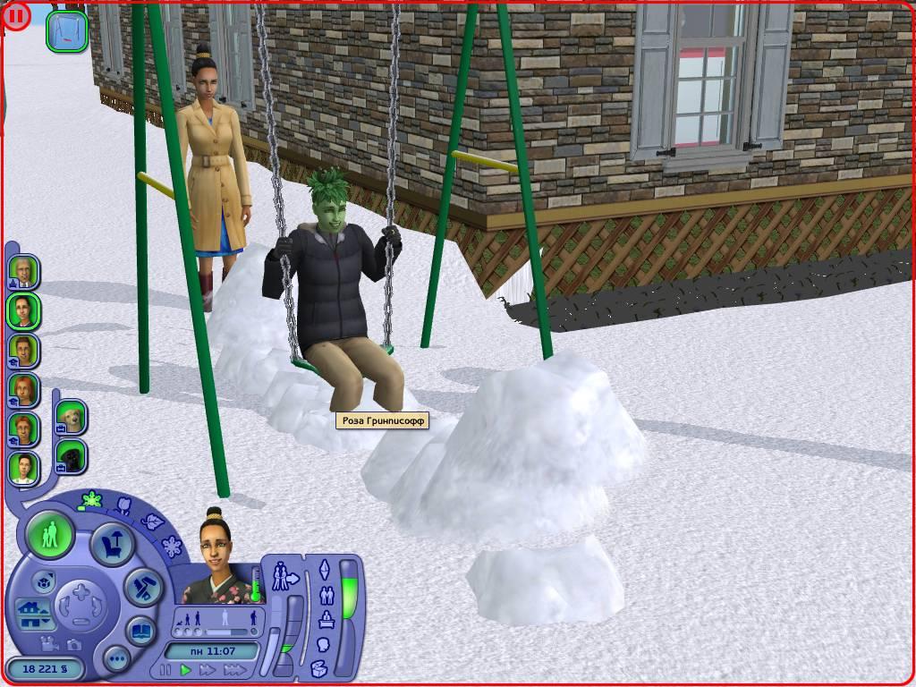Новая пора года - это, в первую очередь, изменение температурного режима. Да-да, отныне каждый сим ходит с персональным градусником, а игрок вынужден следить за его гардеробом. Температура влияет на потребности и способности виртуальных кукол. Погуляли в мороз - быстрее испытали чувство голода, захотели в теплую постельку или горячую ванную. Намокли под весенней грозой на прогулке с собачкой - лезьте под душ и не забудьте вымыть питомца. Смертельной угрозы перегрев виртуальным организмам не грозит. Яркое солнышко напекает симам головку, отчего они начинают капризничать и не реагировать на команды. Замороженный сим ведет себя точно так же - стоит на месте синей ледышкой, пока его не отогреет феном другой сим. Серьезный нагоняй ожидает только симов-родителей от нагрянувшего социального работника, если их ребенок пострадает от недосмотра. Лишение родительских прав - не самое забавное явление по обе стороны экрана.