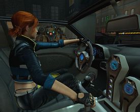 Ближе к концу, SE хлопает себя по лбу и начинает давить комбинированным мясом из имеющегося небогатого набора миньонов. Автомат выпускает одну гранату из подствольника за другой, бочки взрываются, пули свистят, кровища, как вы понимаете, заливает стены. Если бы тушки поверженных врагов во время таких перестрелок не испарялись прямо на глазах и укладывались друг на друга, то можно было бы реально устраивать курганы из тел. Благо наш герой обучен, поднимать и кидать предметы не хуже мистера Фримана. Только развития здесь эта идея не получила. Максимум что придется делать - конструировать лесенки из ящиков. Поначалу рука так и просит монтировки. Игра строится по принципу Half-Life 2 - в шкуре нашего героя предстоит просидеть от звонка до звонка, рассматривая со стороны немногочисленные скриптовые постановки. События разворачиваются по уже отработанной коллегами схеме. В самом начале нас спасает милая девушка, и точно также приходится без оружия бежать и бежать вперед, впитывая спиной вражеский свинец. Редкие встречи с NPC, надо признать, и все диалоги исполнены со знакомой по оригинальному SiN живостью и чувством юмора. Как раз во время таких событий SE слегка преображается и поднимает исполненное грусти лицо из трэш-лужи, чтобы спустя мгновение заново в нее плюхнуться.