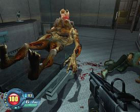 Тем не менее, видов врагов немного. К миньонам, бегающим и летающим, под конец присоединяются бронированные парни с пулеметами, которые обожают после смерти разбрасывать свои конечности по округе. Мутанты двух видов, один из которых под чистую слизан с зомби Half-Life 2. Даже анимация швыряния бочек та же. Турели, привинченные к потолку и свободно парящие в воздухе, выполняют эпизодическую роль и к врагам их можно отнести с большой натяжкой. А приходится, поскольку бестиарий исчерпан. Кроме этого, предстоит целых два раза бороться с порождением чьего-то больного воображения - Очень Большим Мутантом. Он крушит все на своем пути, демонстрируя отменную игровую физику, носится из угла в угол, но не в силах причинить вред ловкому герою. Достаточно вовремя, по-матадорски, отпрыгнуть с пути следования мастодонта и проводить его зарядом дроби в нечто, напоминающее ягодицы. Довершает картину стандартный, аркадный босс-вертолет. Он летает вокруг и имеет целых два вида атаки. Такой бесхитростный old school. Иногда, на самом деле, жалеешь о возвращении на сцену мастеров «старой школы».