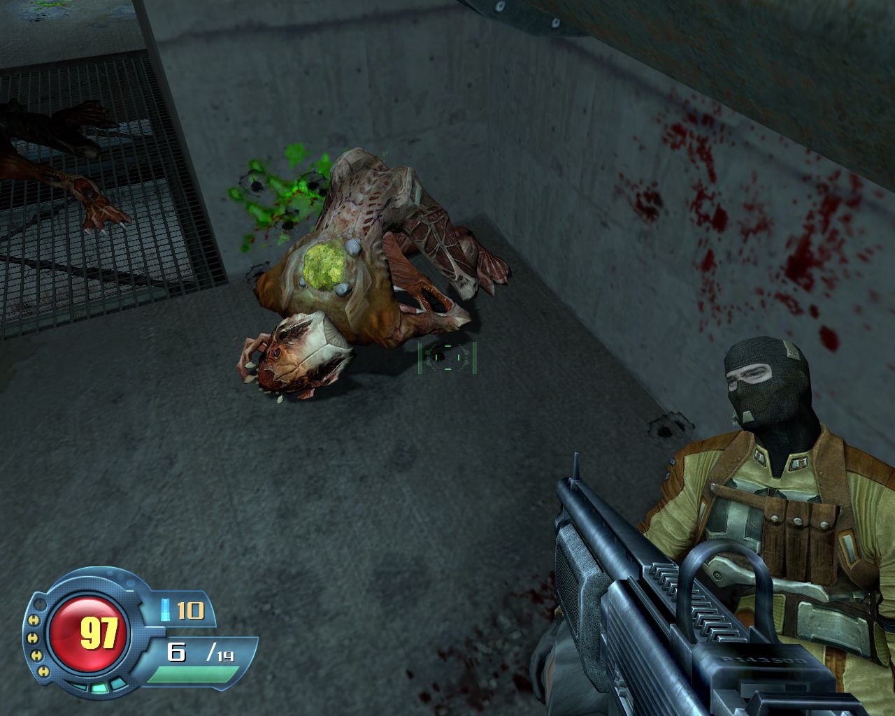 Блейд, в отличие от Фримана, умеет говорить. Как только в уголке загорается иконка союзника, можно нажать на кнопку и получить результат в виде сухой реплики. Если не знать об этой особенности, можно легко и промолчать всю игру. Отсутствие ломика компенсировалось возможностью разбивать ящики прикладом. Из оружия можно целиться на манер шутеров про вторую мировую войну, но здесь эта функция не востребована - патроны и без этого ложатся ровно по целеуказателю. Чтобы пользователь никогда не чувствовал себя вольготно, SE оснащена адаптативным уровнем сложности. Много умираете - нате вам меланхоличных болванчиков с пистолетами. Убиваете всех подряд - получите отряд агрессивных парней с пулеметами. Штука приятная. Какой бы уровень сложности не выбрали, игра, в конце концов, заставит сбросить с плеч леность и хорошенько напрячься, не пренебрегая аптечками и обыскивая ящики в поисках вожделенного контейнера для настенной медицинской станции. Кстати, интересная находка. Станции почти всегда или пустые, или полупустые, поэтому их требуется подзаряжать. А контейнеры с «лекарством» - бьющиеся. Попадет пуля, и все содержимое превратится в недолговременное целебное облачко. Можно немного подлечиться, если до медицинской станции бежать лениво, но при смерти уже приходится всеми силами беречь склянку. Одной ее хватит, чтобы полостью восстановить здоровье.