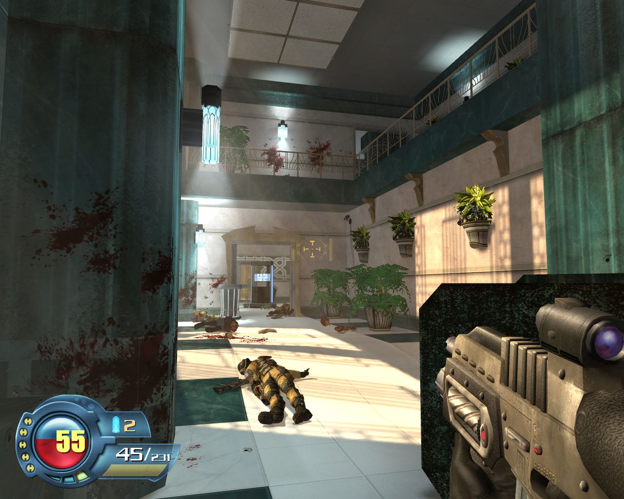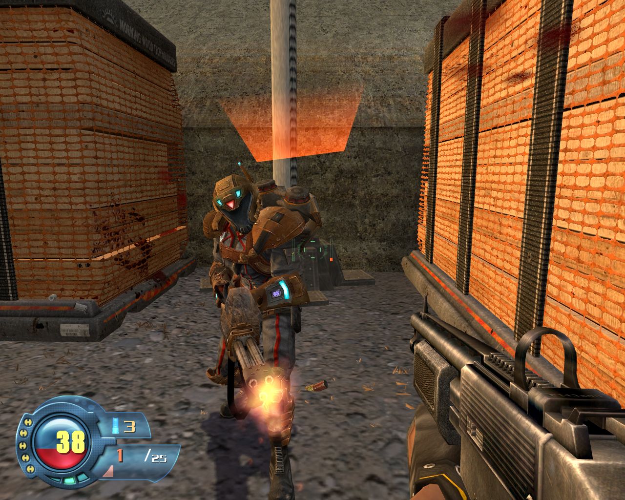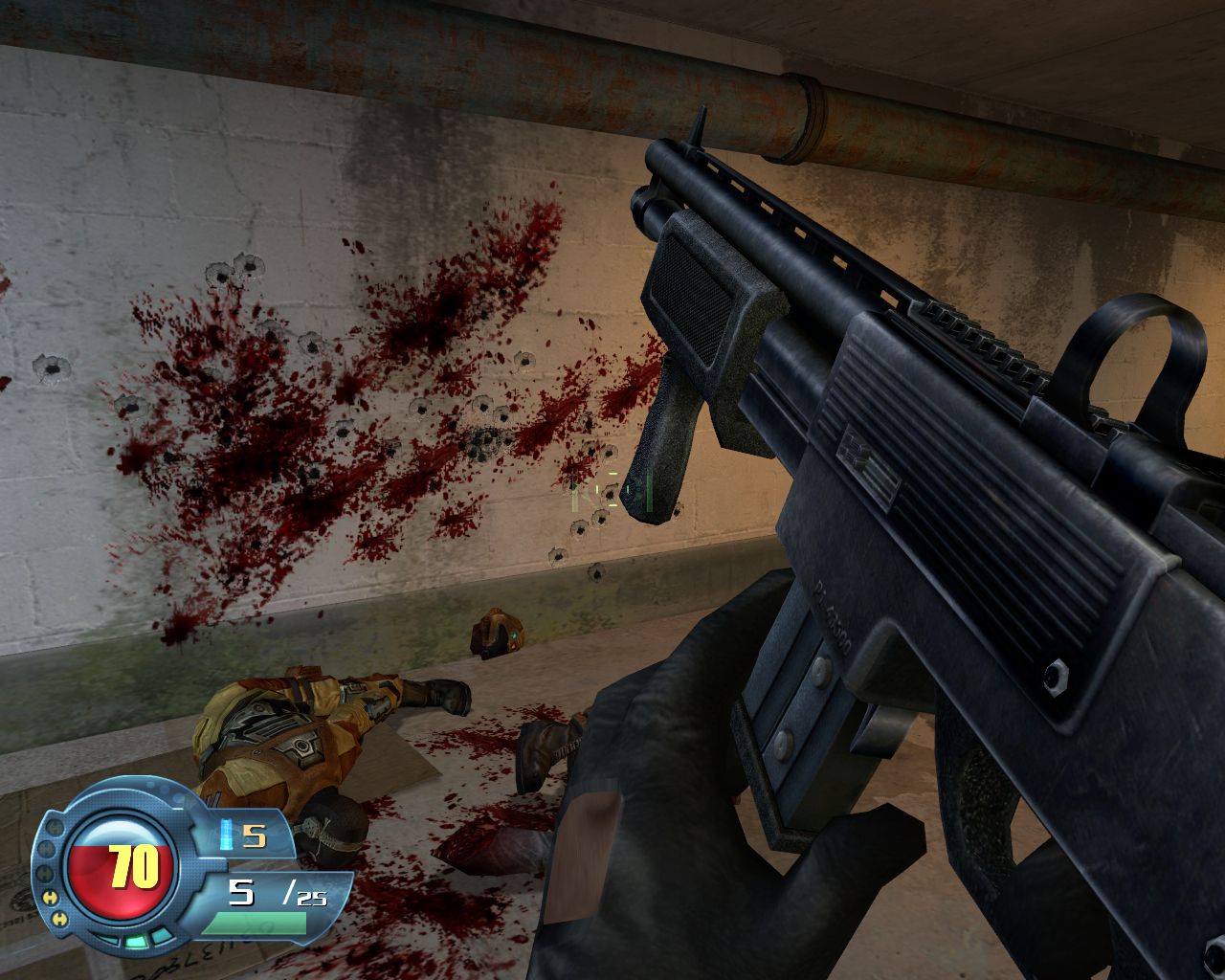 Первая половина игры скучна и невыразительна. Кроме редких эпизодов, враги расставлены равномерно, одна-две штуки на 20 метров. Пиф-паф, два трупа, кровища на стенки, мозги в стороны. Аркадная физика дополняет трэшевую картину, выдавая «танцы смерти» уровня Painkiller. Это не война - это тир, стрельба по немногочисленным малоподвижным мишеням. Чтобы хоть как-то разукрасить это безобразие, повсюду расставлены взрывоопасные предметы. И если бочки с горючим прочно поселились в шутерах еще со времен DOOM, то местные баллоны - уже более интересное решение. Перед тем, как взорваться, они хаотично летают по помещению, вызывая крики отчаяния у перепуганных миньонов. Сюда же относится и летающая разновидность наших врагов - стоит им прострелить баллон с топливом, как они начинают закладывать невероятные виражи. Школа магистра Карлсона всуе.