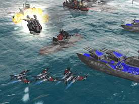 Поскольку упомянули об артиллерии, не лишним будет замолвить слово и за морские флотилии. Здесь царит разнообразие не меньшее, чем на суше. Парк «аттракционов» включает в себя весь спектр водоплавающей техники, начиная с лёгких скутеров, продолжая атомными подлодками (которые ещё и доставляют «мирный атом» на расстояния чуть ли не в полкарты), и заканчивая гигантскими линкорами с водоизмещением в сотни тысяч тонн. Кстати, подобные махины являются одними из самых грозных морских юнитов - строятся медленно, стоят дорого, но если такой Титаник сходит со стапелей… Тогда держись. Базы противника, имевшие неосторожность расположиться недостаточно далеко от побережья, выносятся на счёт «раз».