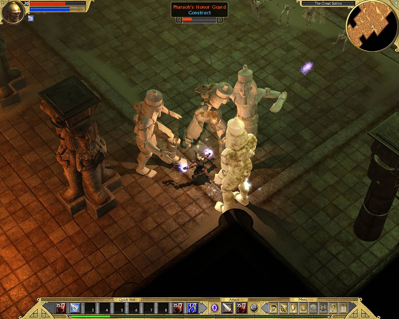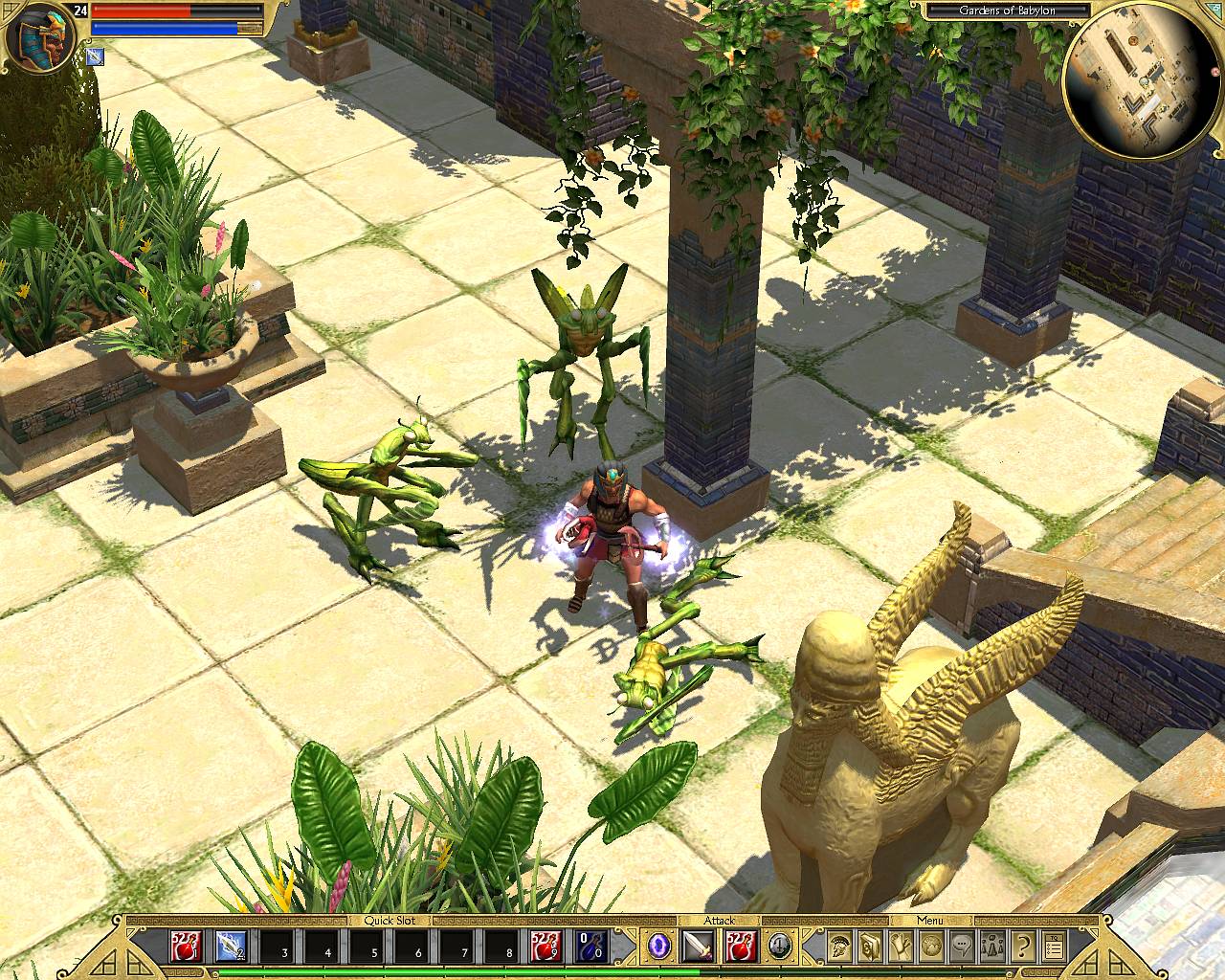 На самом деле Titan Quest (TQ) настолько же удален от Diablo, насколько приближен к другой забаве, на этот раз онлайновой - Guild Wars. Все-таки монументальная концепция старичка уже устарела, потрескалась, обсыпалась и нуждается в реставрации. Guild Wars, ставшая как раз реконструкцией классических идей, придала им завидной гибкости. Свежепроложенной дорогой следует и новоявленный уничтожитель минотавров и сатиров. Своих наработок в нем чуть - в карманах болтается все, что «плохо лежало» у предшественников. Зато лоска этому авантюристу не занимать. Поманит пальчиком, и ломанутся к нему табунами завоеванные без единого выстрела поклонники. Воин в сандалиях