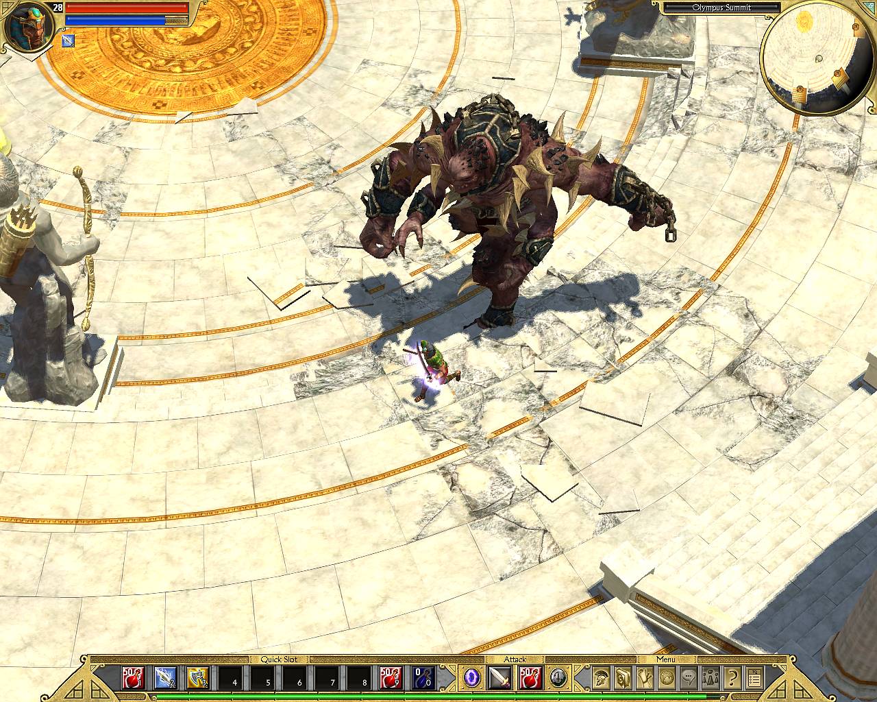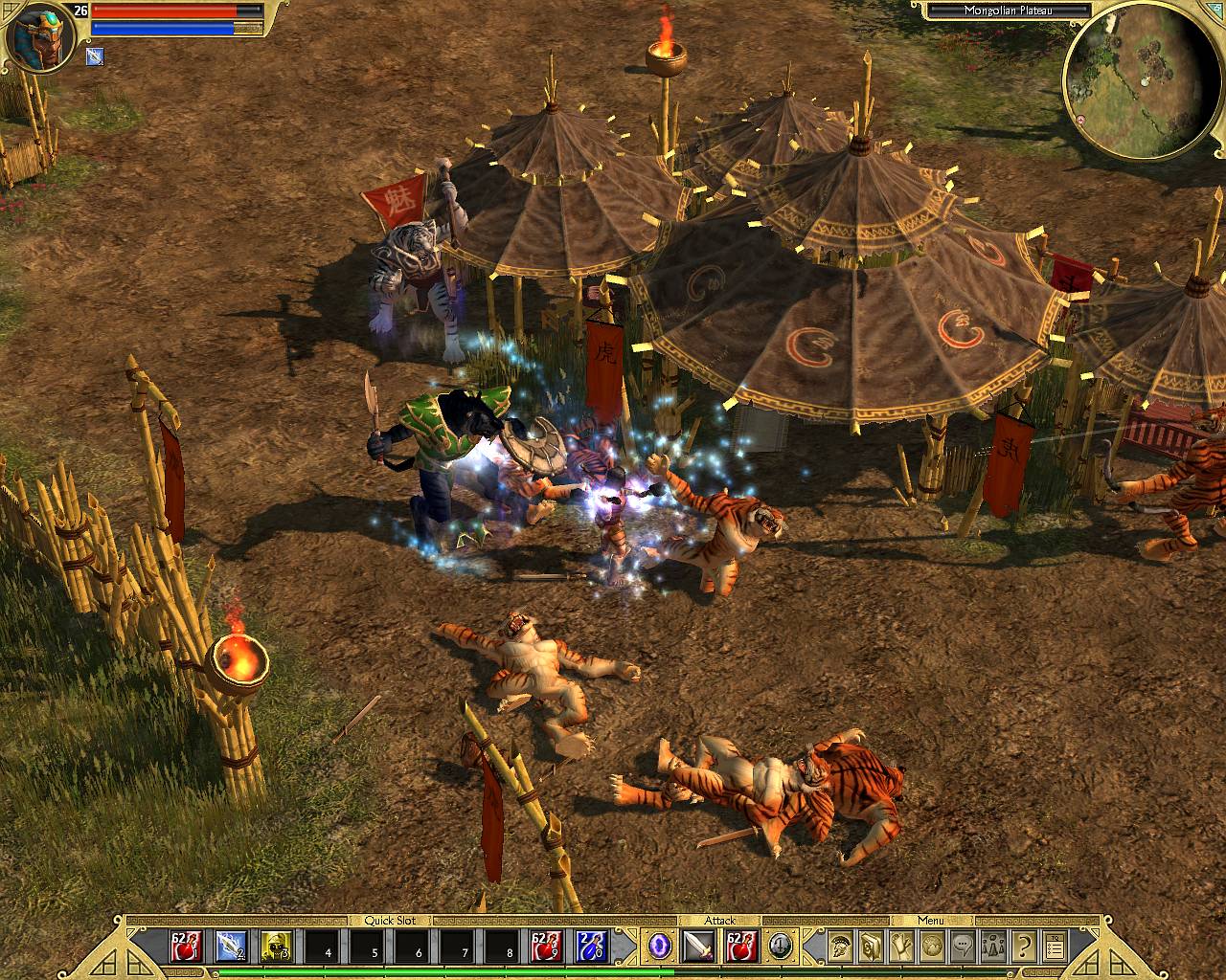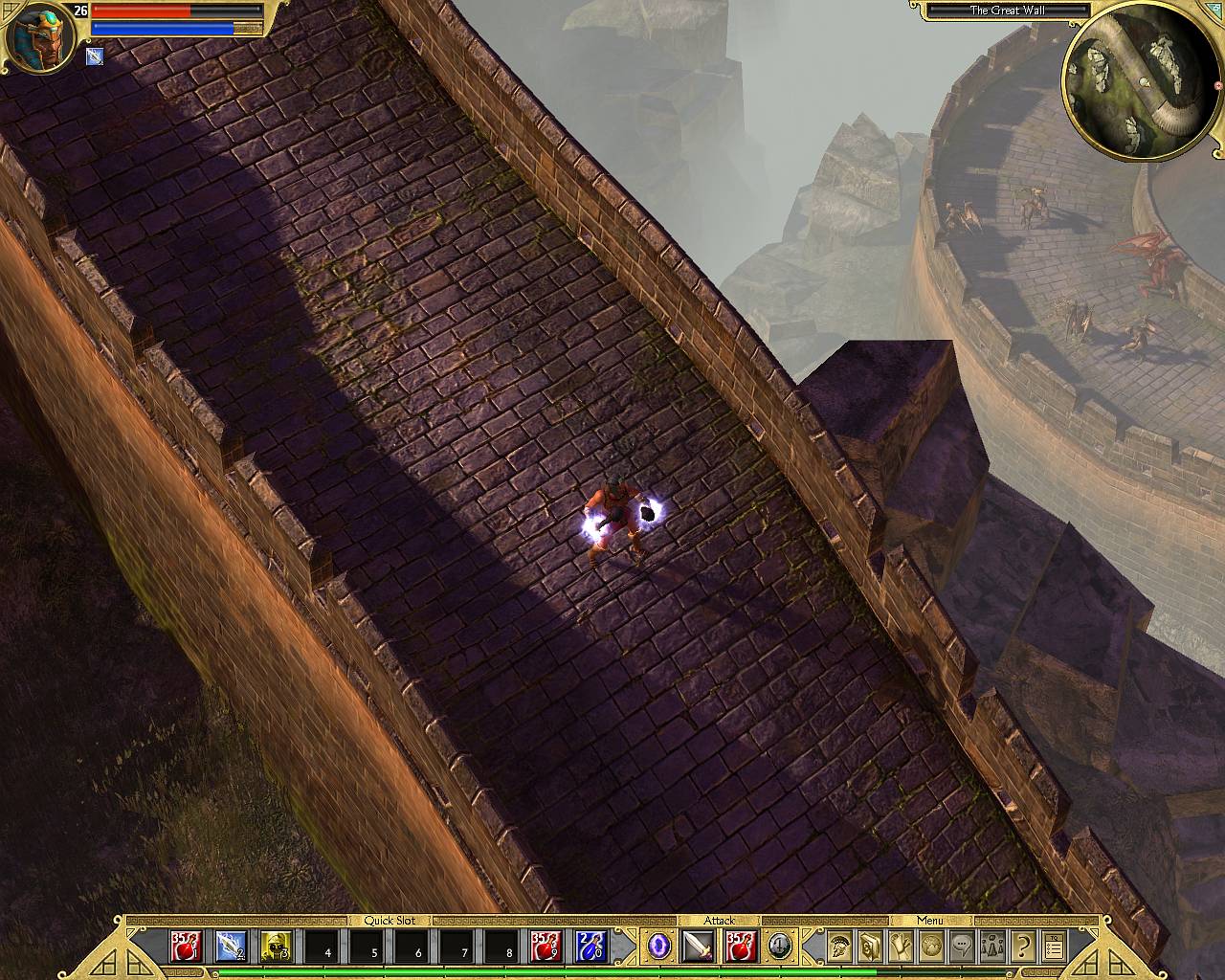 Парадокс заключается в том, что именно с Китая начинается нормальная игра. До этого это так, непринужденная прогулка по красивым ландшафтам с ординарным закликиванием монстрятника. Но стоит только ступить за Великую Стену, как монстры начинают больно кусаться, здоровеют, да еще и колдуют заклинания повышенной опасности. Под конец уже, хочешь не хочешь, но придется поразмыслить над грамотным развитием персонажа, его обмундированием и сопротивлении к разным типам повреждений. Особенно когда, наконец, ноги ступят на белоснежный мрамор полуразрушенного Олимпа, на вершине которого ходит-бродит толстый, огромный, шипастый, мрачный пропуск на более высокий уровень сложности. А там, на Epic и Legendary, все вполне стандартно - монстры крутеют, сопротивление к магии падает, а за смерть приходится расплачиваться заработанным опытом. DiagnosisМожно, конечно, обозвать TQ «жалким клоном Diablo», но лучше похвалить за удачную компиляцию существовавших идей, разбавленных толикой собственных интересных решений. Классический игровой процесс, подкрепленный последними веяниями онлайновых ролевых игр, завернутый в высокотехнологичную графику и украшенный мастерской дизайнерской работой. Специально для тех, кто соскучился по action/RPG старой школы и не ищет приключений в онлайне. Красивая, стильная, ненапрягающая игра. Только очень уж легкая. Pro: