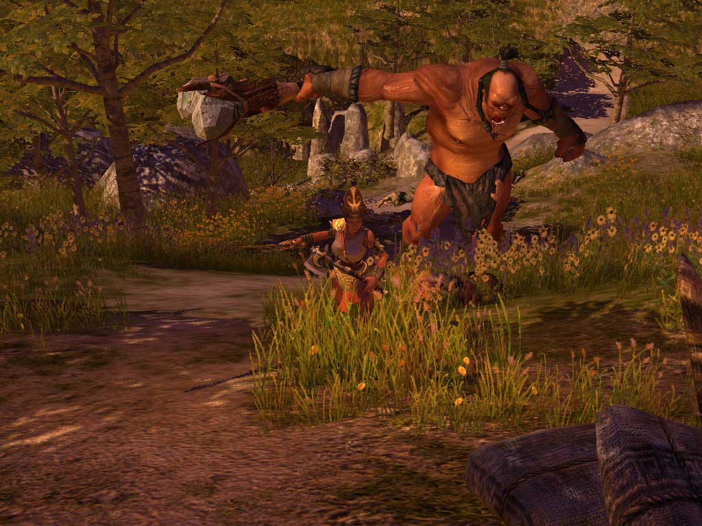 Продолжаем раздавать сладкие обещания. Как известно, прогресс - вещь обоюдоострая. С каждым годом умнеет игрок, растут его потребности и желания, неуклонно повышается общий уровень игры... Так что прогресс кремниевых болванчиков - вещь вполне само собой разумеющаяся. На смену простейшему трюку «line of sight», благодаря которому монстры атаковали любого инородца, оказавшегося в поле зрения, приходит фирменная технология искусственного интеллекта, щеголяющая куда более сложными схемами. В частности - монстры будут встречаться вам не только поодиночке, но и в виде организованных бандитских группировок. В которых (как вы уже догадались), существуют свои вожаки, отличающиеся от остальных в первую очередь нестыдных размеров мозгом. Поэтому не стоит удивляться, когда вы столкнётесь с осмысленным противодействием - в то время, как основная ударная сила набросится на вас с топорами и мечами, их предводители займутся вполне обычными для любой MMOG вещами. То есть, держась за спинами монстро-бойцов, будут поддерживать их сопутствующими заклинаниями, подлечивать, а в случаях, когда запахнет жареным - побегут за подмогой в соседний аул, или задействуют возможности внутриигровой физики. Кстати, о ней.