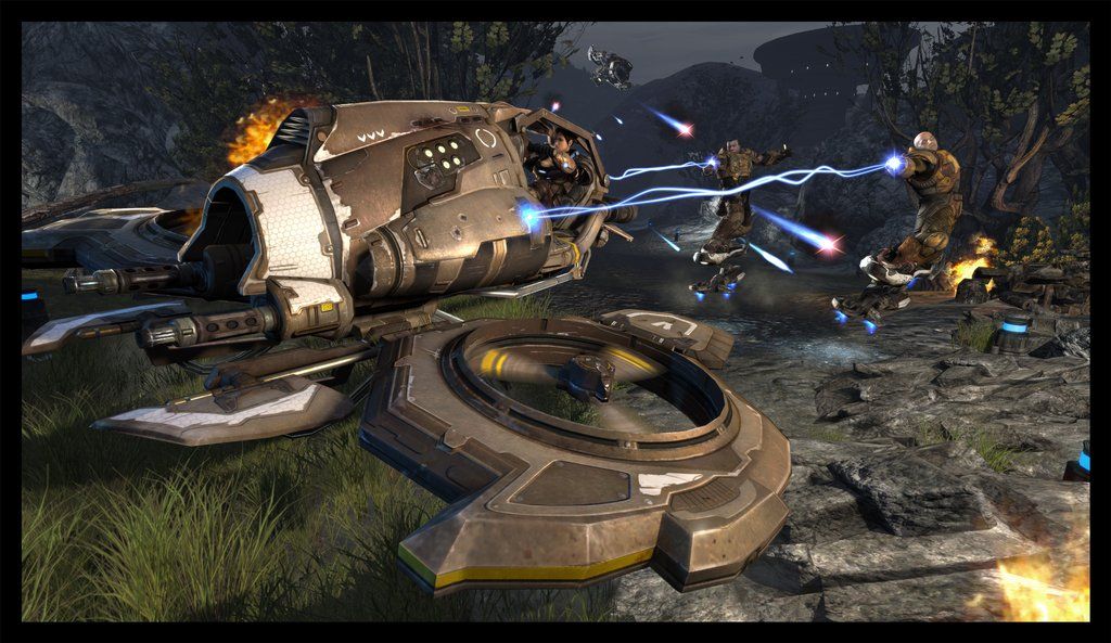 А вот следующая особенность может здорово разнообразить геймплей. Волевым усилием решено было внедрить в процесс игры hoverboards - парящие над землёй доски, наподобие тех, что мы видели в культовом фильме «Назад в будущее». C помощью этого ноу-хау игроки (особенно те, которые только что возродились вдали от места битвы) получат шанс быстрее добраться до центра сражений. Скорость передвижения на доске повышается в 2-3 раза, правда за счёт «избавления» игрока от возможности вести огонь. Будучи подстреленным, игрок сваливается с доски и несколько мгновений пребывает в «ступоре», после чего вновь обретает способность отстреливаться. Однако лучше до этого не доводить - «парковать» hoverboard рекомендуется на подступах к местному Ватерлоо. Самое забавное в ситуациях с досками - это добавление разработчиками системы трюков, наподобие того, как это было реализовано в играх серии Tony Hawk's. Естественно о полноценной реализации речи не идёт, однако уровни наверняка будут оборудованы элементами интерьера, позволяющими высоко прыгать и посылать противникам эффектные насмешки.