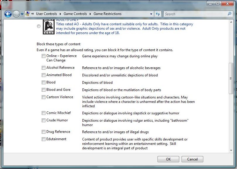 С помощью функции Parental Controls можно легко ограничить доступ детей к несанкционированным развлечениям. Можно запретить им вообще запускать игры или запускать лишь избранные из них. Поскольку для многих игр Vista автоматически выставляет возрастной рейтинг, то можно наложить ограничение на все «взрослые» игры.