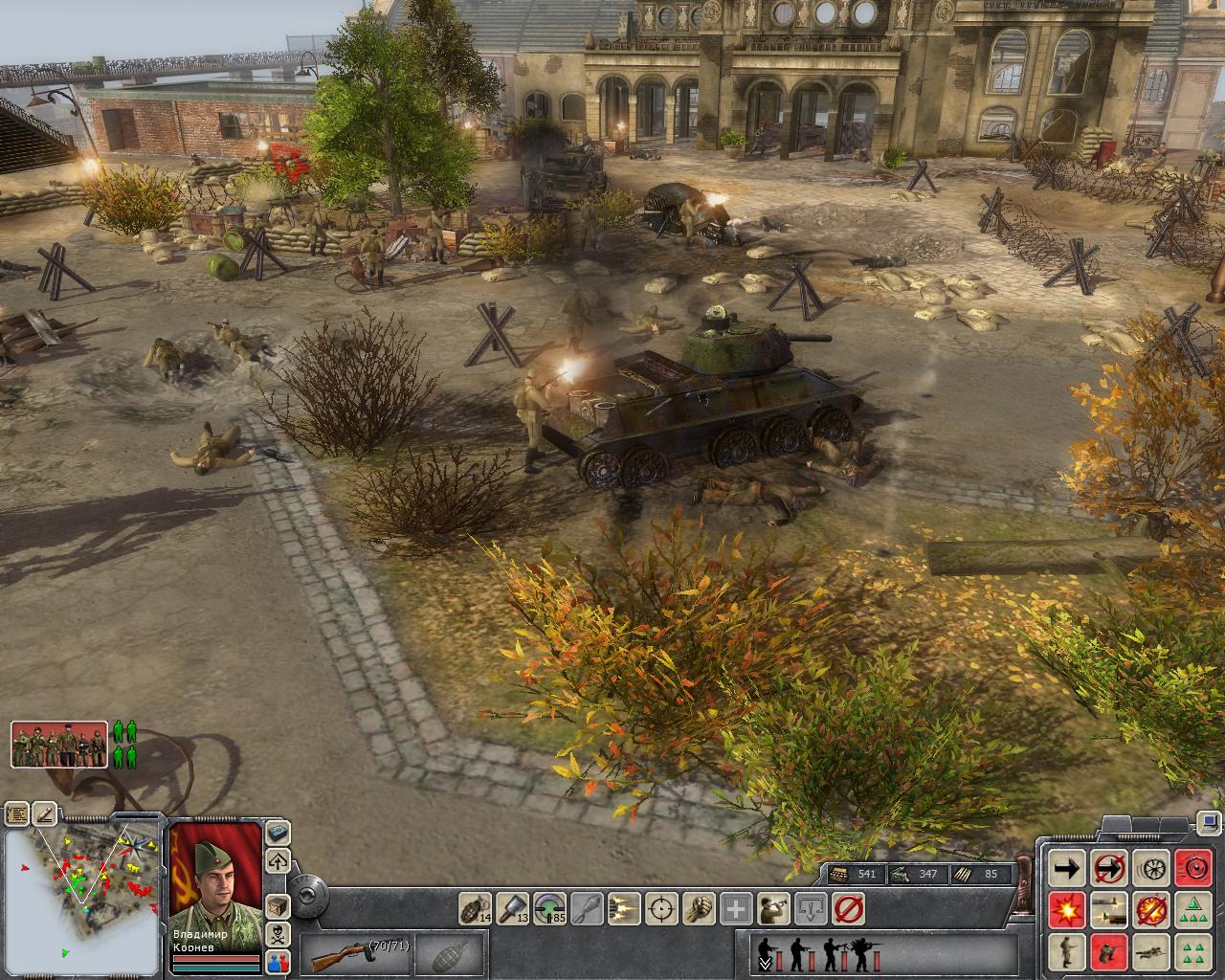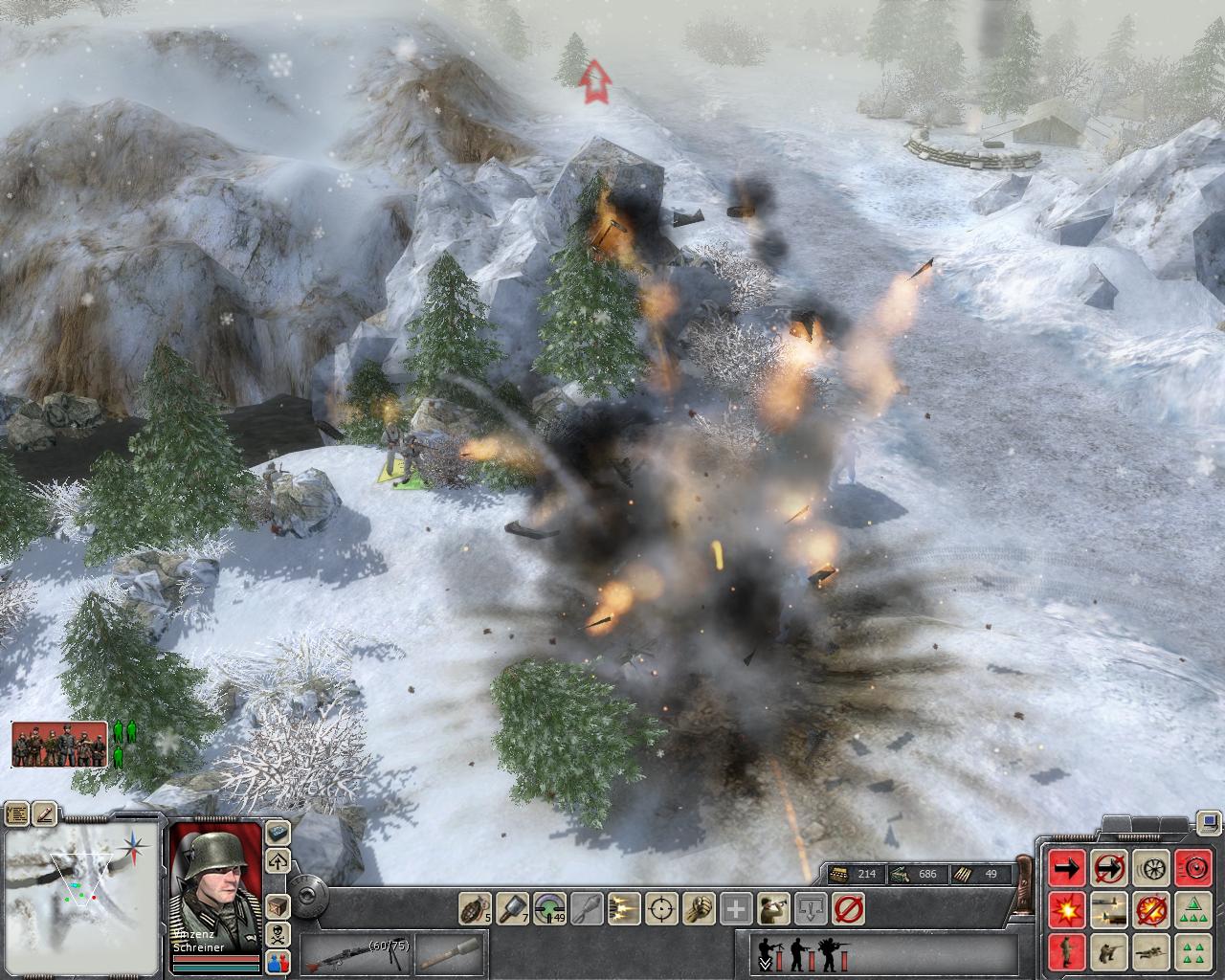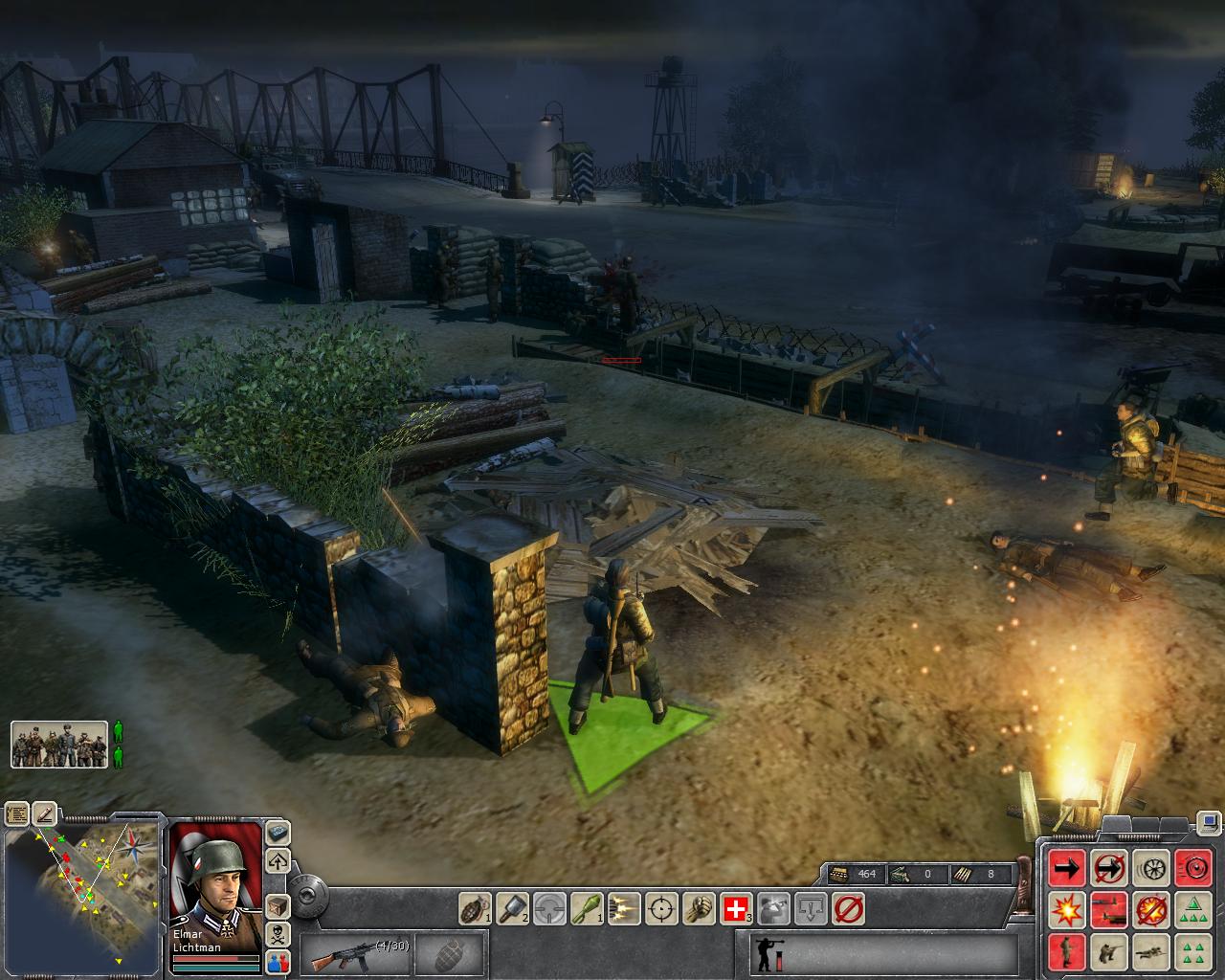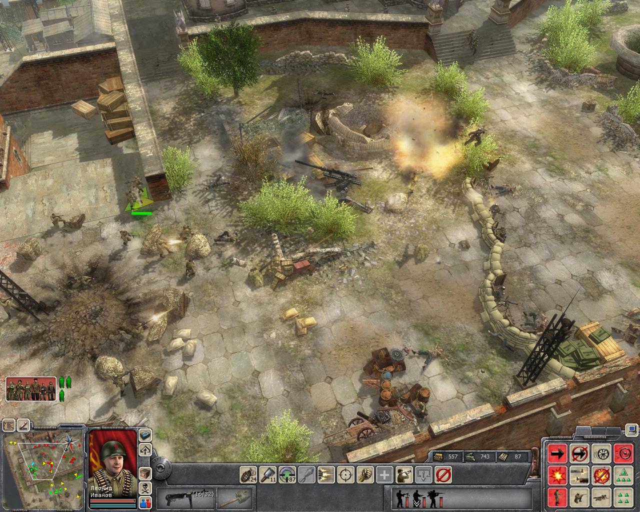 Управление отрядом не требует от игрока большого военного опыта. Привыкнуть к механике командования получается почти мгновенно, стоит только преодолеть грамотно выстроенный тренировочный курс. Запоминать ничего не приходится: основные команды и так находятся на виду. Хвала компактному интерфейсу, без лишних жертв уместившему в себе несколько десятков клавиш. Правда, о существовании большинства из них вспоминать не приходится. Смена режимов стрельбы и положения стрелка относительно земли - главный хлеб командира. Все остальные приказы, вольготно развалившиеся на трёх закладках, используются крайне редко. На случай, если мину понадобится заложить или танк починить. Всё оставшееся время здесь царит безостановочный бой без лишних телодвижений.