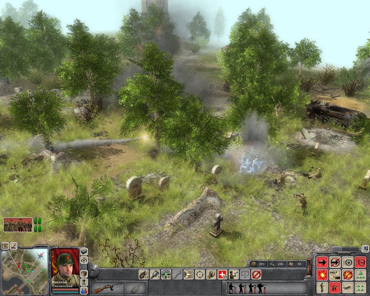 Вредить неприятелю, используя данную систему управления, - радость и мука в одном лице. А всё из-за странной своенравности защитников Родины. Отказываясь временами подчиняться приказам игрока, они часто выходят из строя по причине своей глупости. Нежелание следовать за остальной командой у солдат возникает так же часто, как и маниакальная тяга к расстрелу пехоты с помощью дефицитных ракет. С реакцией на внешние раздражители у них тоже не всё в порядке. Враг, внезапно выбежавший из-за угла, - мишень практически неуязвимая. Даже судорожные клики на фигурку супостата не способны расшевелить ленивый отряд. Лишь через несколько секунд они соизволят развернуть своё оружие в его сторону. Правда, за это время последний может легко уложить на лопатки этих зевак.