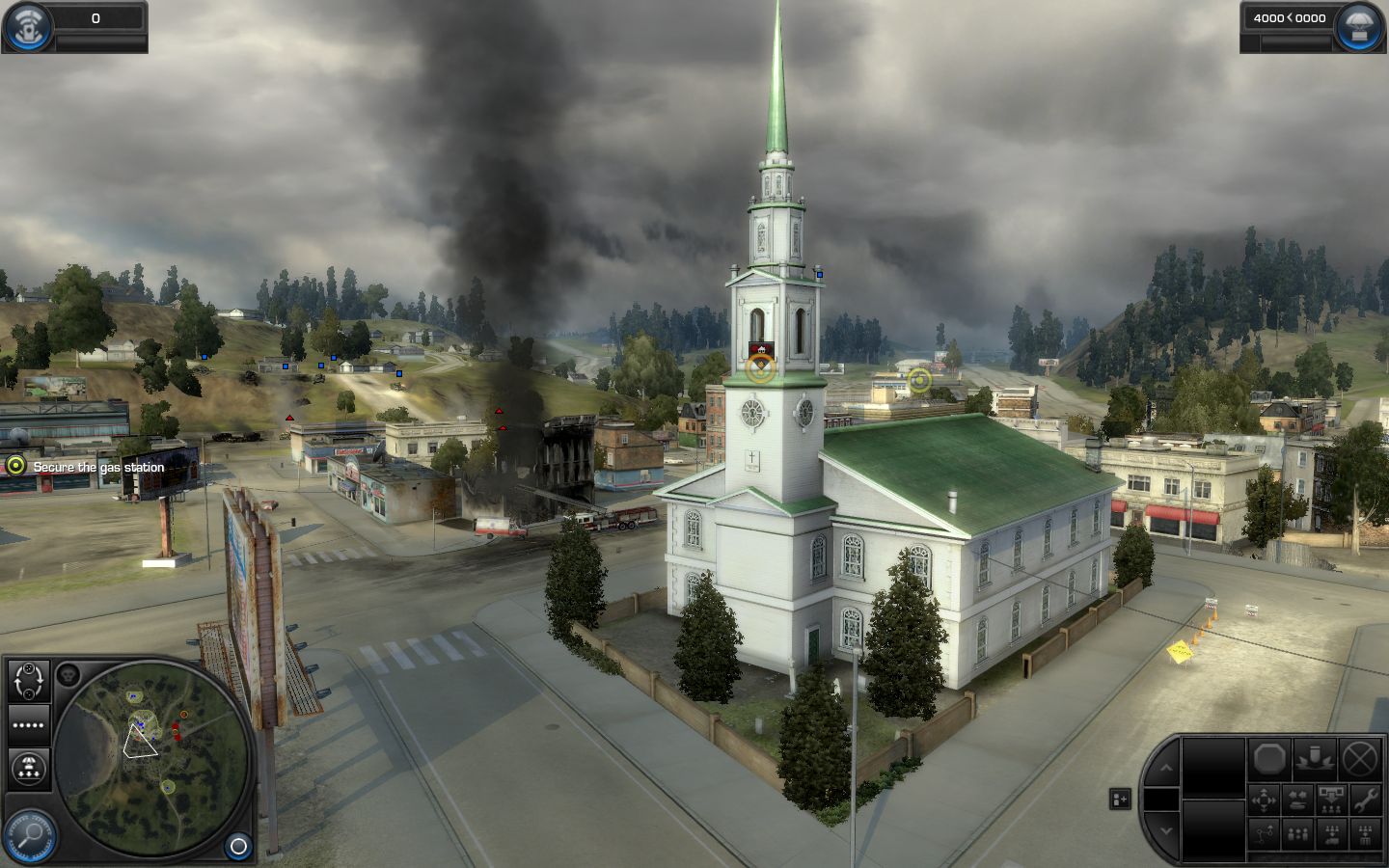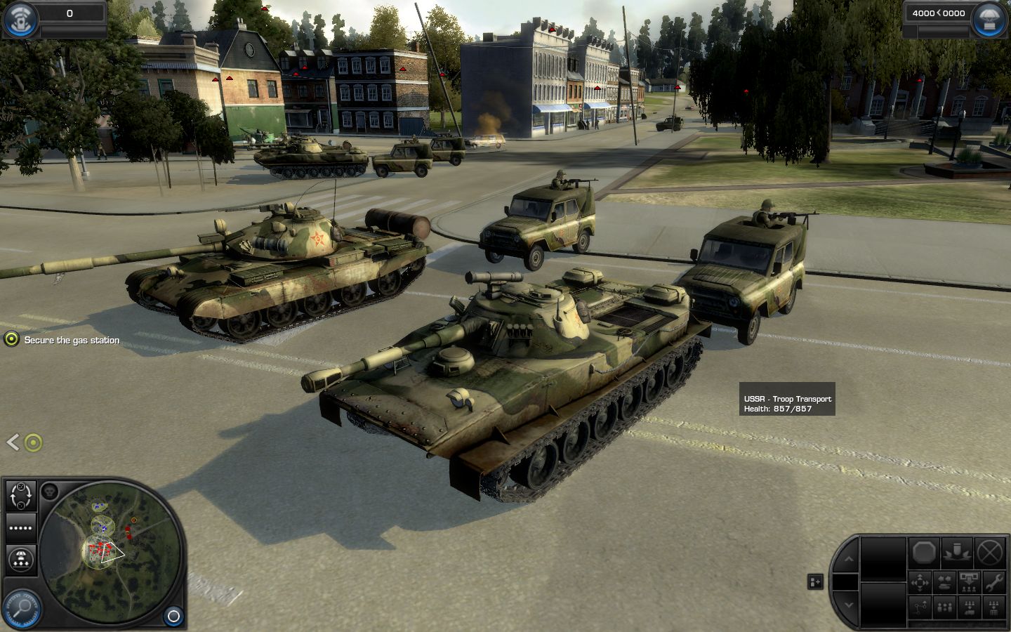 ![]() Разработчики постарались сделать картину максимально реалистичной. Для этого они взяли за основу удачный движок от предыдущего проекта Ground Control 2 и доработали его, обвешав со всех сторон современными эффектами. Четкие текстуры, красивейшее небо, спокойное море, хорошая детализация, корректное соотношение размеров домов, техники и солдат – все это создает приятное впечатление. Уровни умело смоделированы, с трепетным вниманием к мелочам, насыщены множеством объектов. Камеру можно приближать сколь угодно низко к земле, чтобы любоваться работой дизайнеров и жать на кнопку PrntScn, оставляя на память об увиденном массу очаровательных скриншотов. Но самое удивительное начинается, когда в город врывается техника, и с экрана на оторопевшего пользователя начинают изливаться спецэффекты. Здания и танки разлетаются под ковровой бомбардировкой. Трава и деревья выжигаются напалмом. От взрывов в земле образуются глубокие воронки. Танк можно спрятать. Справедливости ради, стоит отметить, что в Company of Heroes разрушения реализованы лучше, хотя бы из-за более совершенной физической модели и большего количества частиц. Зато World in Conflict может похвастаться объемным дымом, который подчиняется физическим законам. Его сносит ветром, он разбегается в стороны под вертолетными пропеллерами и, самое главное и самое заметное, нет резких переходов на границе между средами. Поскольку в игре во время боевых действий весь экран покрывается взрывами и горящей техникой, то подобный подход оживляет картину, делает ее более динамичной и естественной.