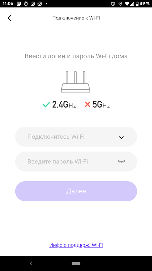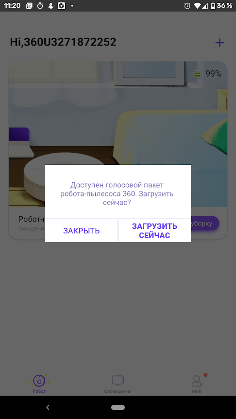 От пользователя требуется выбрать сеть и сообщить приложению пароль от нее. Поддерживается только диапазон 2,4 ГГц, в 5-гигагерцовом прибор работать, увы, не умеет (это плохая новость для жителей многоквартирных домов с сильно зашумленными диапазонами). Настройка занимает около полутора минут. Подключенный пылесос предлагает загрузить и установить пакет голосовых сообщений для русского языка, но для первого опыта мы решили отложить загрузку — английский у робота вполне понятен.