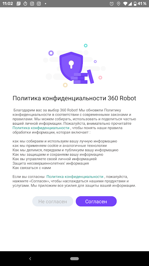Установленное приложение требует разрешения на доступ к фото, мультимедиа и файлам на устройстве. Поразмыслив, мы не позволили это сделать и, как показал дальнейший опыт, никаких проблем это не вызвало. После установки пользователю предлагают ознакомиться с политикой конфиденциальности компании.