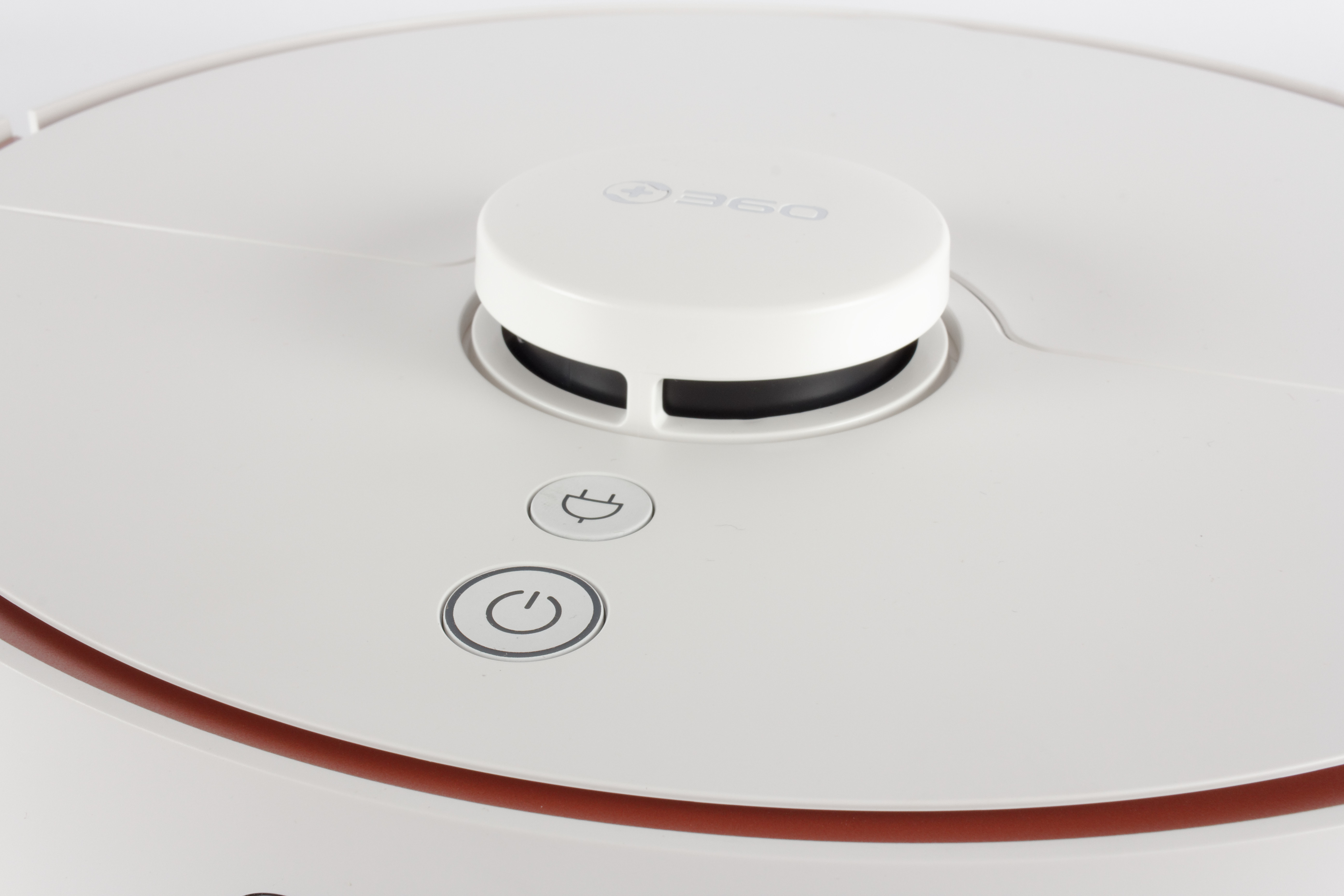 360 S7 имеет традиционную круглую форму и выполнен из белого пластика без каких-либо «архитектурных излишеств»: единственные его украшения — логотип производителя на башенке лидара и светло-коричневая окантовка верхней панели.
