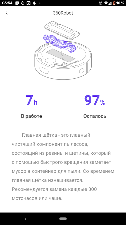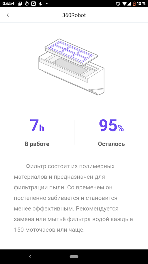 Приведенные в руководстве интервалы обслуживания и ресурс расходников являются приблизительными и зависят, разумеется, от интенсивности использования пылесоса. Мобильное приложение позволяет более точно определять срок обслуживания или замены.