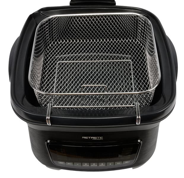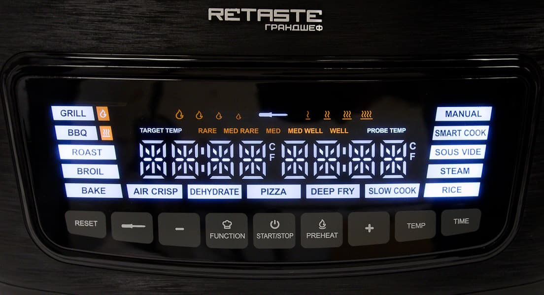 Главная фишка — наличие двух тэнов, верхнего и нижнего (правда, это есть еще и у ГрандШеф Retaste GRND-001 и Felfri FF-AF-06). Это преимущество обеспечивает более быстрое и равномерное приготовление, отсутствие необходимости переворачивать продукты в процессе приготовления. Анонсированы более 300 ручных настроек для тех, кто предпочитает самостоятельно контролировать температуру и время приготовления.