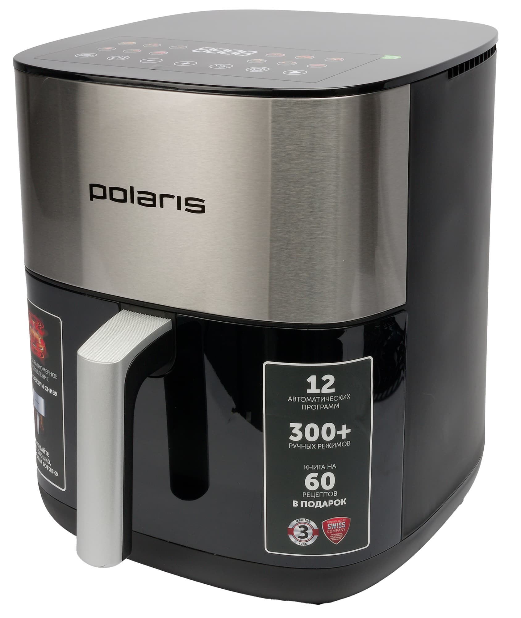 - Автопрограммы: 12. Аэрогриль, жарка, выпечка, овощи, подогрев, сушка, креветки, фри, кексы, рыба, стейк, курица