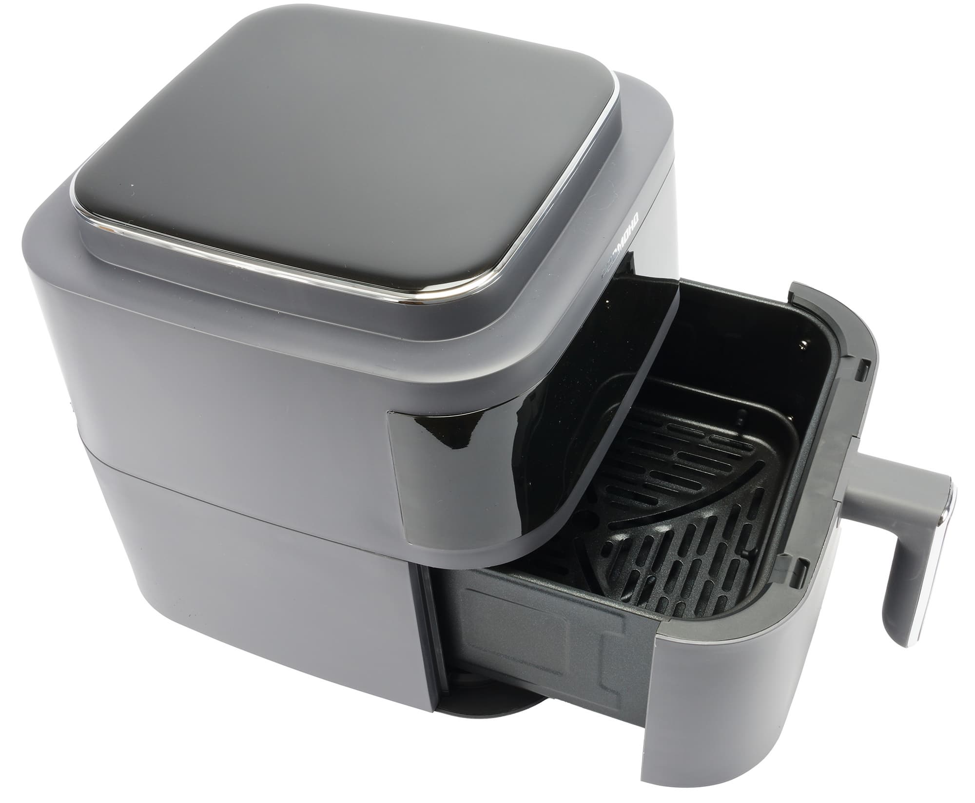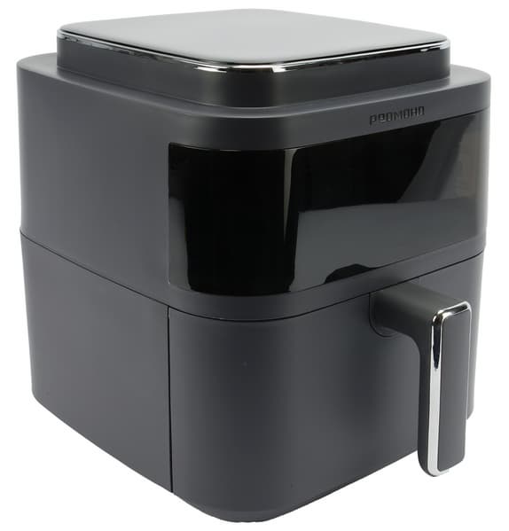 Поразил нас необычный гибридный формат этого аэрогриля, напоминающего как старые стеклянные аэрогрили с верхним вентилятором и съемной крышкой, так и мультиварку с чашей, имеющей прочное керамическое антипригарное покрытие (и поэтому данный аэрогриль может заменить не только духовку, фритюрницу, йогуртницу, дегидратор, рисоварку, су-вид, но и мультиварку, и медленноварку).