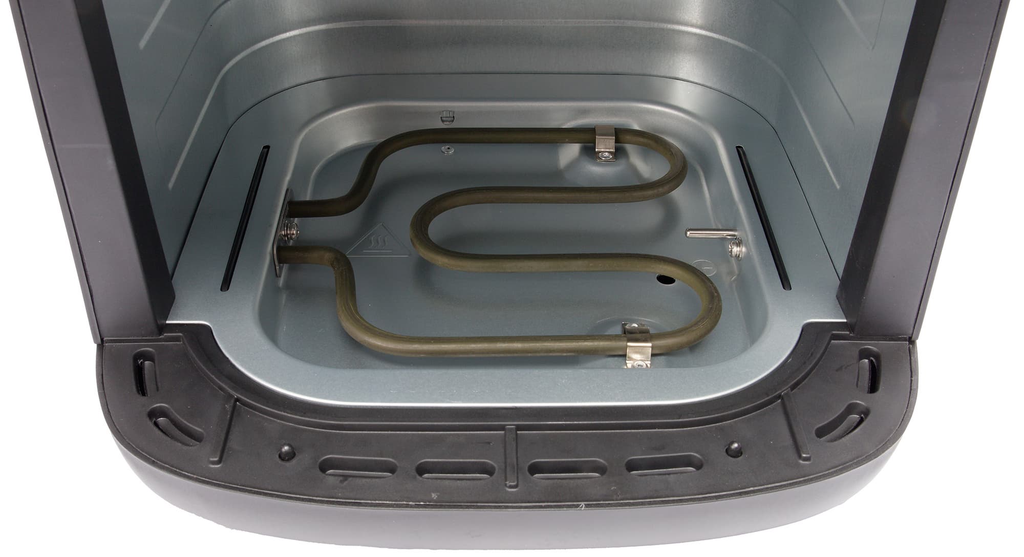 Тэн закрыт и защищен от жирных брызг металлической решеткой, что продлевает ему жизнь и облегчает уход за прибором.