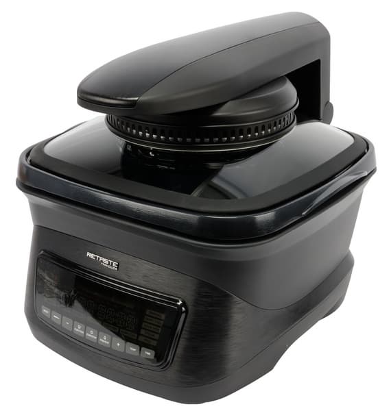 Аэрогриль с инфракрасным нагревом, который позволяет готовить блюда значительно быстрее классических духовок и аэрогрилей, при этом потребляя меньше электроэнергии. Технология Turbo Cycle обеспечивает круговую циркуляцию горячего воздуха: что обеспечивает более равномерное приготовление без необходимости переворачивать продукты в середине цикла, чтобы они не были сыроватыми снизу.