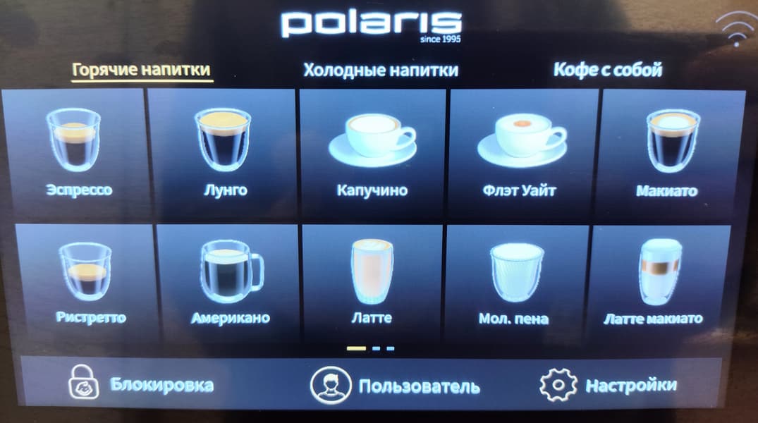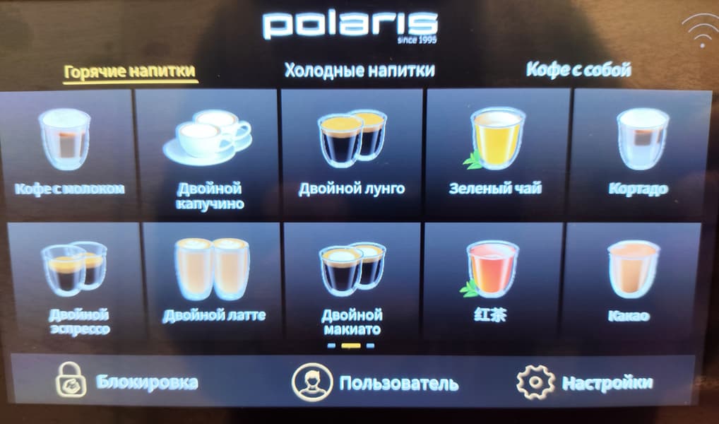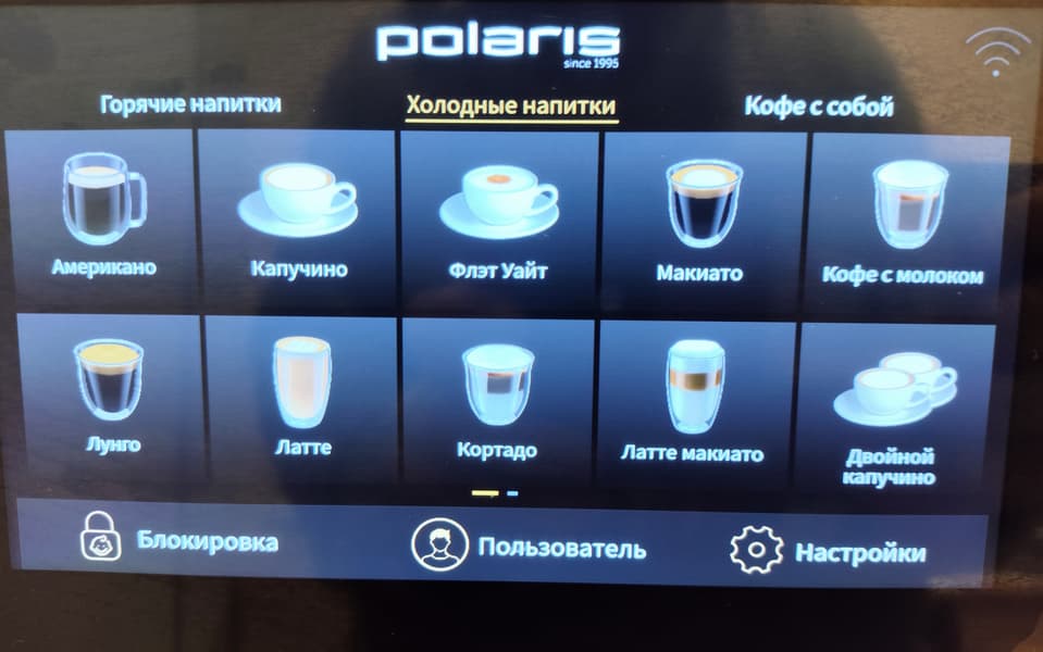 Управление машиной осуществляется посредством сенсорного дисплея — очень наглядного и понятного, а также — хорошо откликающегося и без ложных срабатываний (по крайней мере, мы не заметили). Также можно управлять прибором через приложение (бонусом там есть необычные рецепты кофе) и голосовыми помощниками типа Алисы (но там пока что все не очень доработано и добиться взаимопонимания трудно). На фото дисплея на самой машине вы можете видеть большинство предустановленных рецептов, которые можно немного менять индивидуальными ручными настройками прямо перед приготовлением (крепость, длительность предсмачивания, объем эспрессо в мл, уровень экстракции, подстроить температуру и, наконец, установить количество молочной пены). Но уверены, что большинству пользователей это не понадобится: рецепты выверены, напитки получаются практически идеальными. Важно: все этапы приготовления отображаются в реальном порядке (и заметим, в правильном!). Например, для латте макиато пункт «молочная пена» - на первом месте, для капучино — на последнем. Особенно мы оценили приготовление по всем правилам флэт-уайта: из двойного эспрессо и молока. Кофемашина честно приготовила эспрессо, сбросила таблетку, затем намолола вторую порцию зерен, сделала второй эспрессо, и только после этого подала молочную пену.