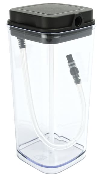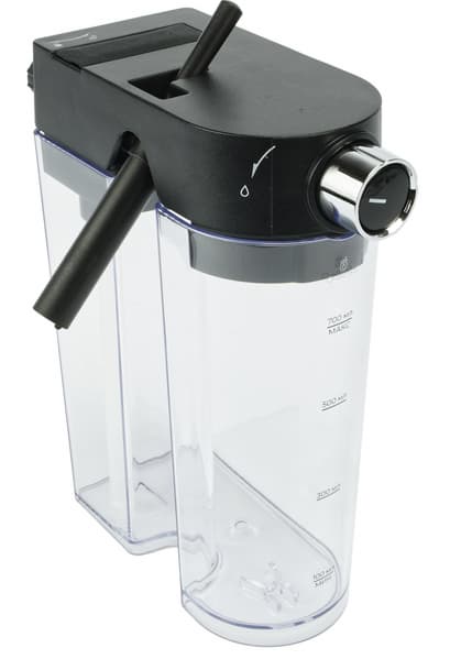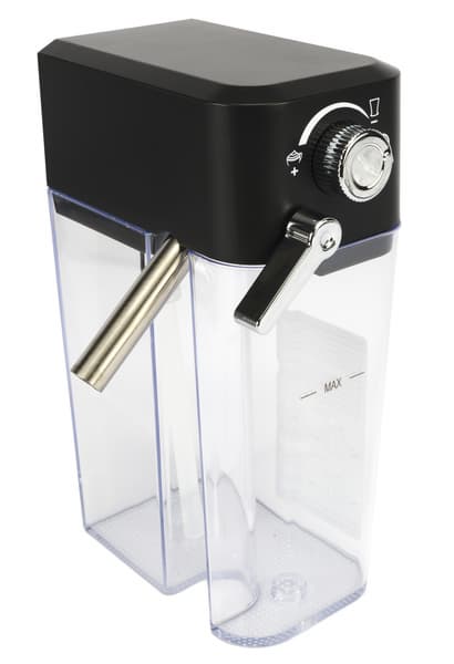На крышке резервуара для молока находится регулятор его подачи, позволяющий управлять количеством пены, а также запускающий режим самоочистки. В контейнере для молока находятся две трубочки: металлическая — сопло выхода уже вспененного молока, а также и пластиковая — через нее набирается молоко. На крышке резервуара находится также регулятор металлического сопла, при повороте которого молочная пена направляется в чашку, а не на стол. На самом резервуаре, выполненном из пластика, есть отметка, обозначающая максимальное возможное количество молока.