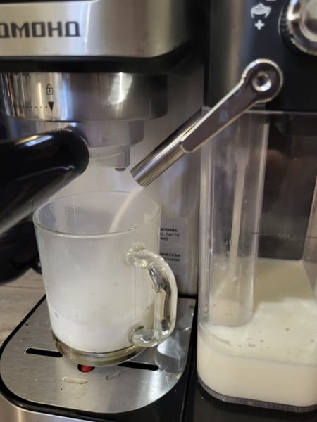 В целом это типично для многих рожковых кофеварок с автоматическими капучинаторами. А вот качество взбивания молока нас устроило — оно было как раз для капучино: плотная, гладкая пена.