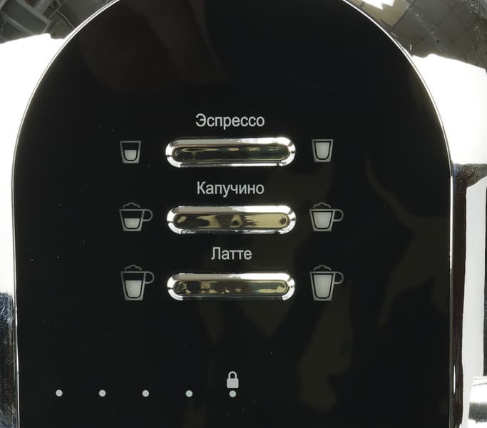 6 сенсорных кнопок и 4 индикатора позволяют выбирать программы, настройки и оповещают о текущем статусе прибора и о неполадках. У кофеварки несколько режимов: эспрессо, американо, лунго, латте, капучино, пар, очистка. Одинарным нажатием на кнопку напитка запустится процесс приготовления, а двойным — откроются настройки объема воды и молока. Настройка программ капучино и латте позволяет независимо настроить объем молочной пены и кофе для каждого рецепта. В случае с капучино можно настроить объем кофе от 30 до 100 мл, молока — от 40 до 250 мл (по умолчанию — 40 и 60 мл соответственно). Для латте объем кофе варьируется от 30 до 100 мл, молока — от 80 до 250 мл (40 и 100 мл по умолчанию соответственно).