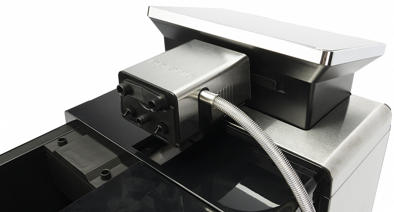 Вспениватель молока напоминает обычный ручной капучинатор, но к нему подключается внешний кувшин-молочник со съемной (ее предстоит регулярно очищать) трубкой. На модуле-вспенивателе есть маленький и по виду не очень надежный регулятор интенсивности подачи молочной пены. Молочник объемом 400 мл закрывается пластиковой крышкой. Молоко подается через трубочку и поступает в кофемашину по гибкому шлангу — все стандартно.