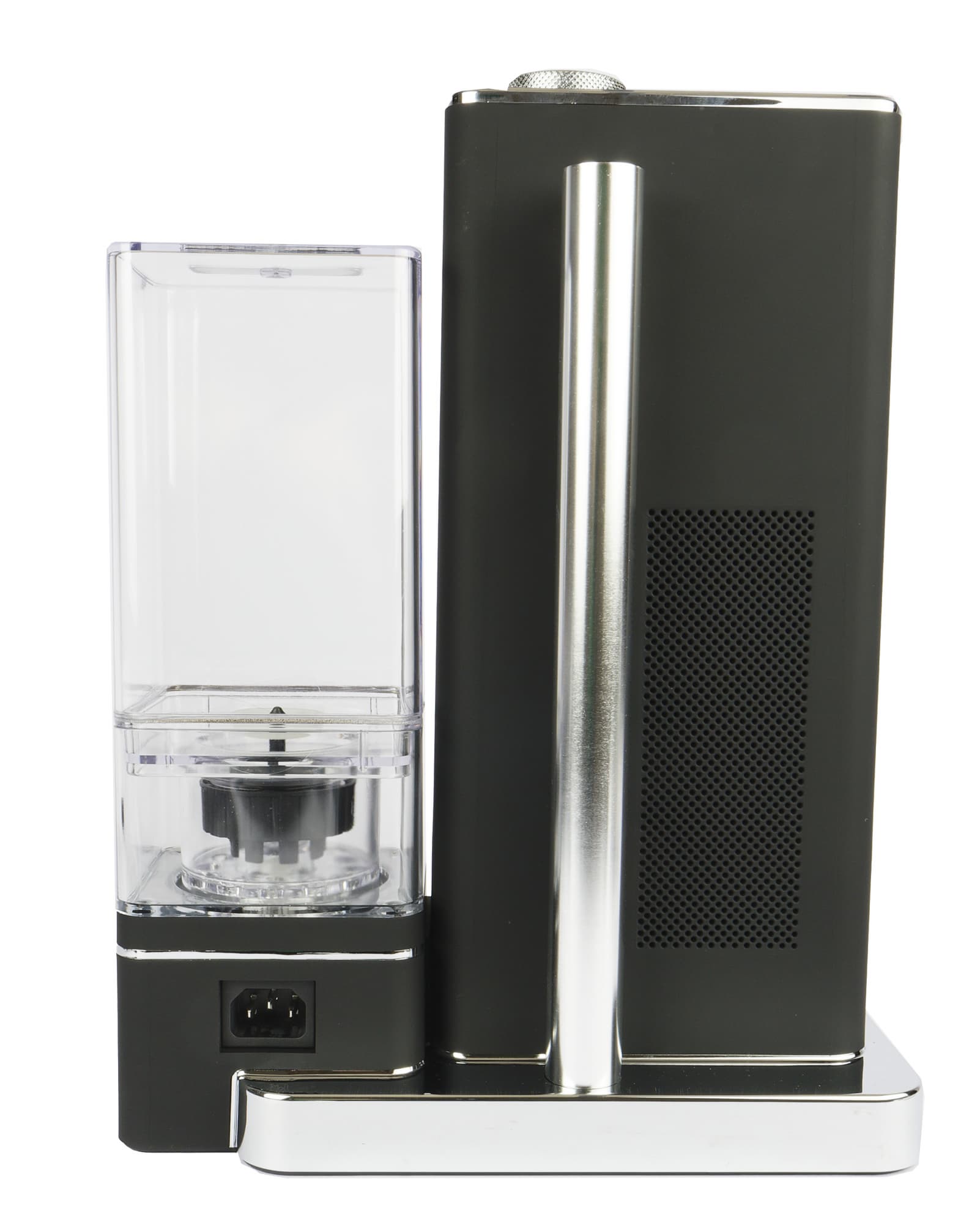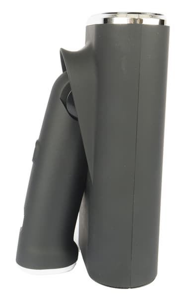 Рабочий резервуар имеет небольшой объем — 90 мл, за счет чего отпариватель очень легко лежит в руке и не напрягает кисть, но достаточный, чтобы не наполнять его каждые пять минут. Расположен он не в основании ручки, а с противоположной стороны сопла для выхода пара. Рукоятка также стыкует отпариватель с дополнительным резервуаром объемом 1 литр: при установке на него вода автоматически подается в маленький, рабочий резервуар через специальный клапан. Такое техническое решение позволяет найти баланс между маленьким объемом резервуара, облегчающего работу, и большим количеством вещей, которые можно обработать за один раз, не бегая наливать воду в резервуар. Еще один удобный момент — трехметровый длинный шнур, позволяющий работать достаточно далеко от розетки.