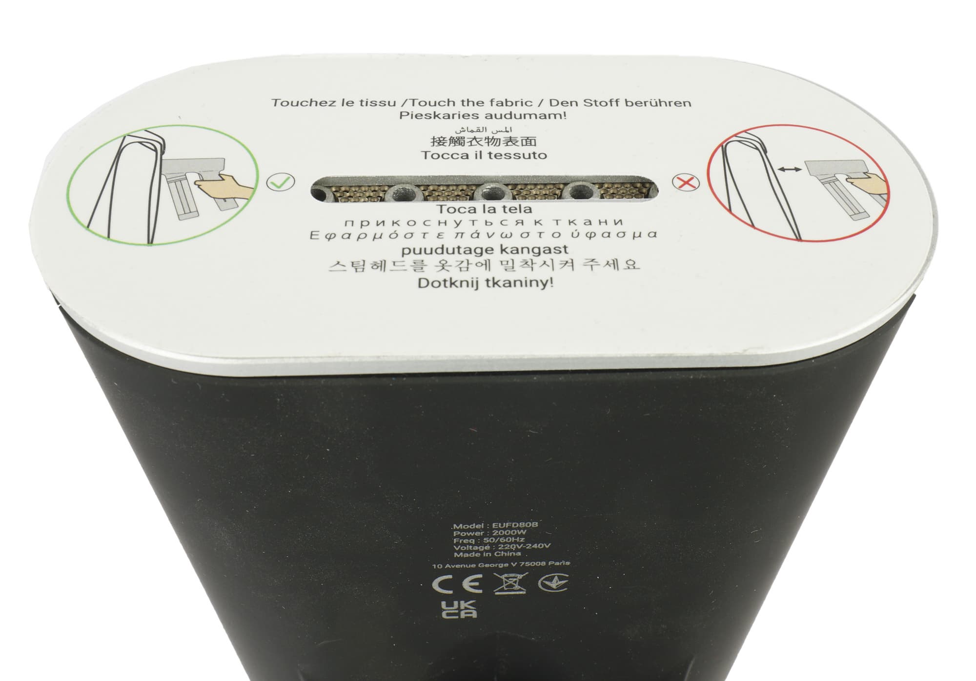 Внешне SteamOne EUES200B элегантен и компактен, собирается просто, после включения в сеть готов к работе через 45 секунд, легко переносится с места на место. Большое внимание уделено безопасности пользователя: шланг в месте захвата рукой защищен термоизолирующей пеной, а датчик Start and Stop заметит отсутствие движения и отключит подачу пара, если пользователь отвлечется и забудет, что включен прибор. Прибор тоже защищен: от образования накипи при помощи системы «Anti-calc», от работы без воды в резервуаре.