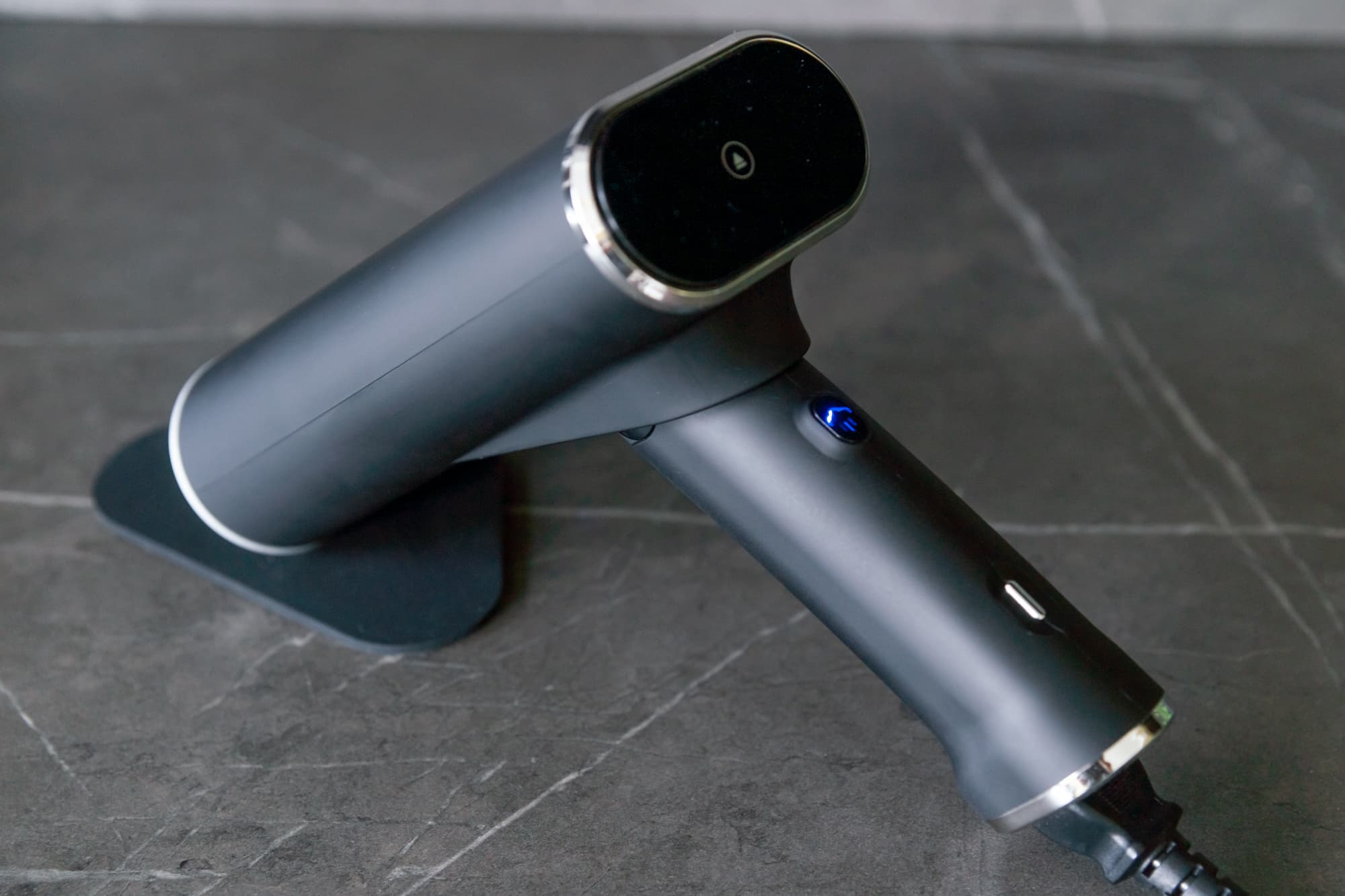 Объема резервуара для воды (1,2 л) хватает на 80 минут непрерывной работы, как и обещает производитель. Что же касается качества отпаривания, то оно нас очень впечатлило: мы отпаривали более десяти образцов одежды из самых разных тканей, включая лен, плащевку, плотный деним, вискозу, акрил, хлопок с эластаном, приводили в порядок даже винтажные вещи — безупречно, разве что иногда небыстро (но сомневаемся, что возможно быстро отпарить лен). В процессе выяснилось, что прибор не только разглаживает складки на одежде, но и удаляет с нее пыль и кошачью шерсть, а также устраняет запахи, то есть подходит для того, чтобы освежить вещь, которую уже надевали или которая долго висела в шкафу — например, при смене сезона.