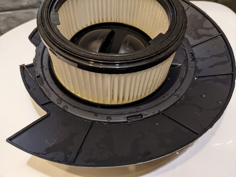 После нескольких уборок НЕРА-фильтр остался практически чистым и сухим, из чего мы сделали положительные выводы как о качестве фильтрации, так и о системе влагозащиты верхнего блока агрегата.