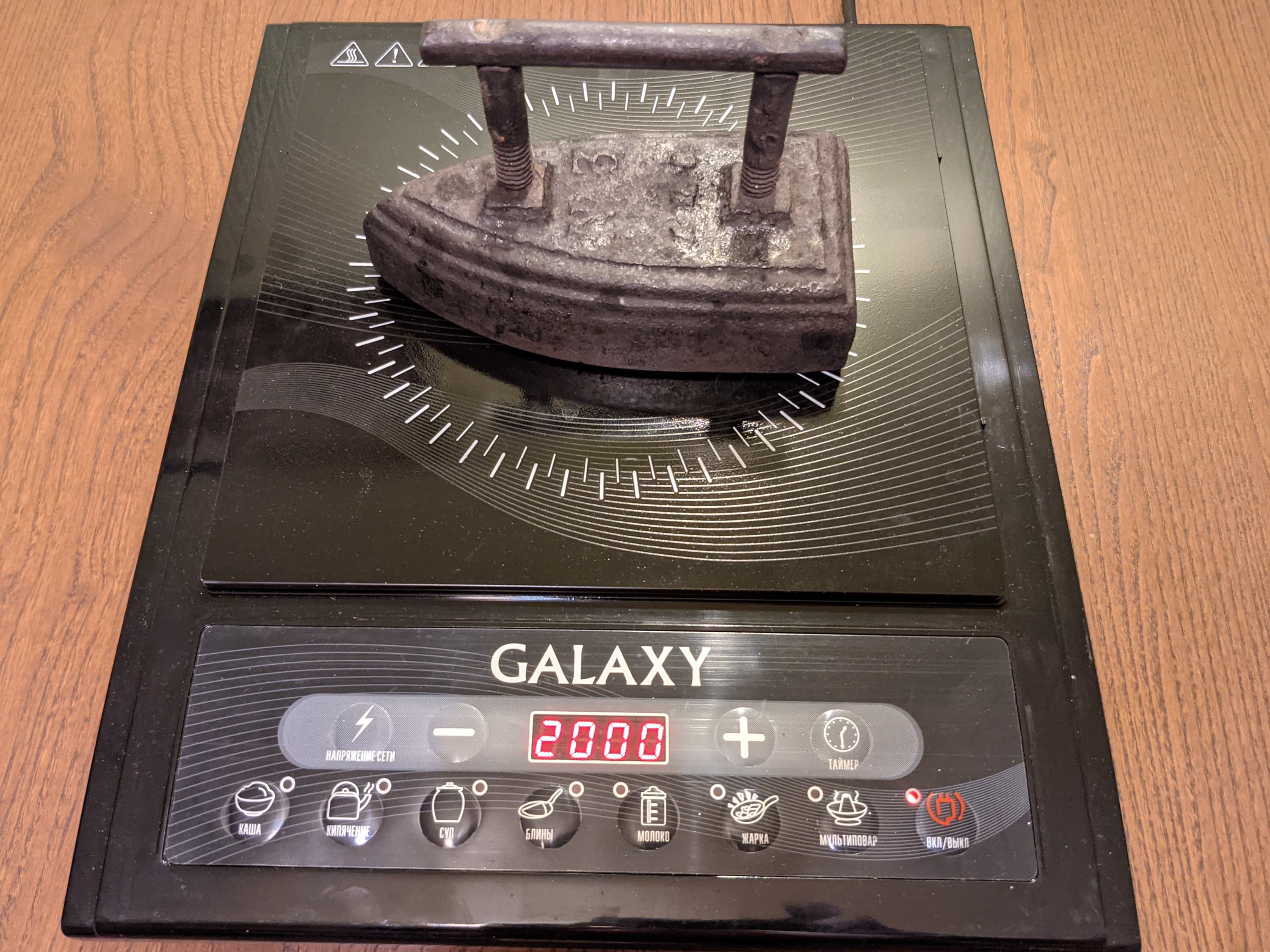 Материал и конструкция утюга позволяют нагревать его и на индукционной плите — стационарной или портативной.