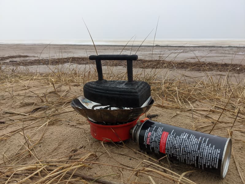 Нагретый на портативной горелке утюг позволяет не только отгладить и высушить одежду, но и, к примеру, согреть промокший спальный мешок: забираться в заранее нагретый спальник при холодной ночевке значительно комфортнее. А вот подогревать прибор на костре мы не рекомендуем: подвешенный над пламенем утюг быстро покрывается трудноудаляемой копотью и может запачкать ткань при глажке.