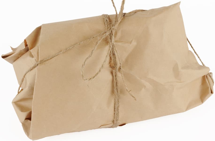 Утюг завернут в коричневую крафтовую бумагу и перевязан шпагатом из натуральных волокон. На упаковке нет никаких надписей, фотографий и рисунков, выглядит она стильно и элегантно.