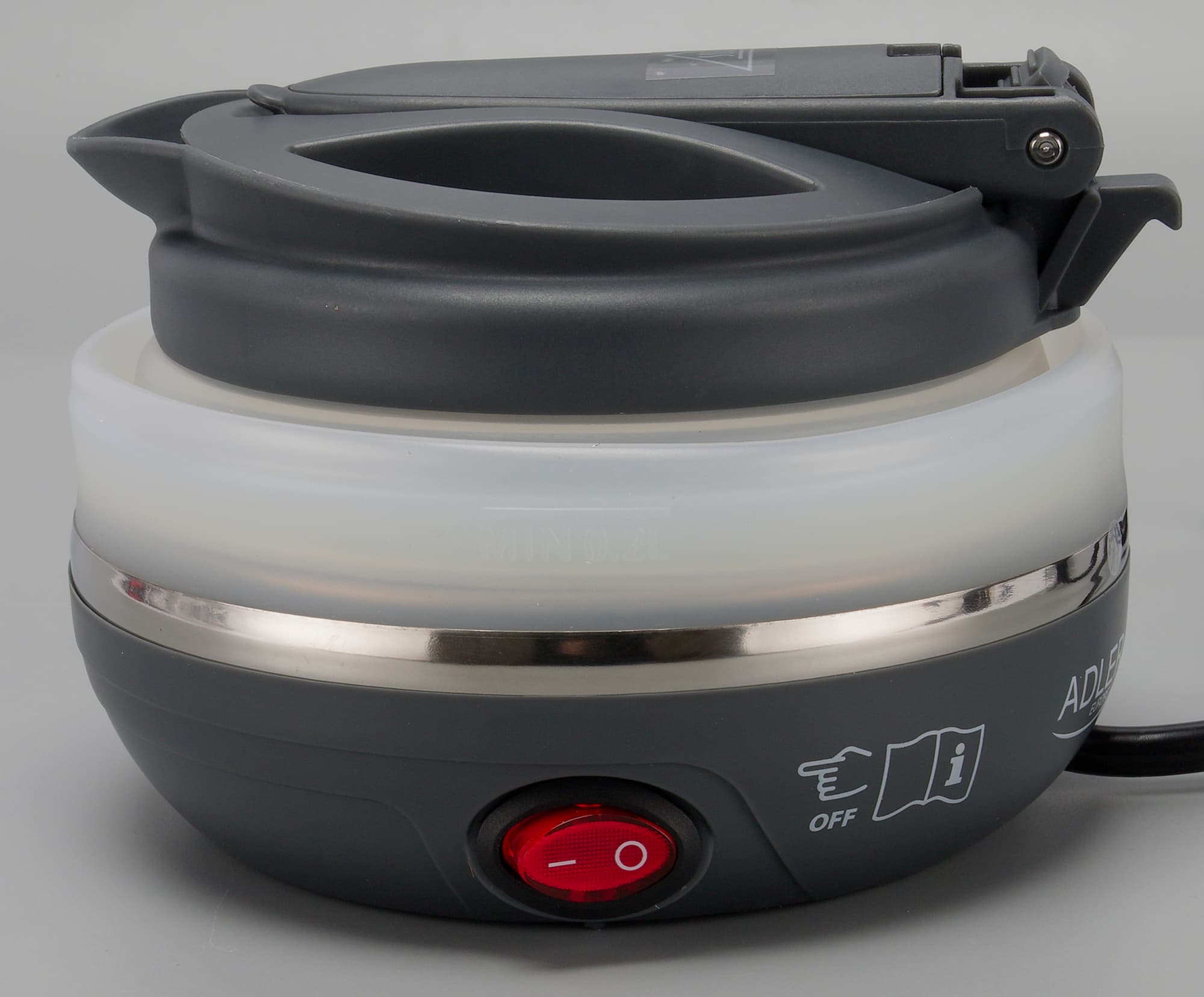 Чайник Adler AD1279 произвел на нас в целом положительное, но местами противоречивое впечатление: оригинальное решение со складным силиконовым корпусом позволяет существенно снизить вес и габариты устройства. Теплоизоляция при этом практически отсутствует, однако для дорожного чайника это не проблема.