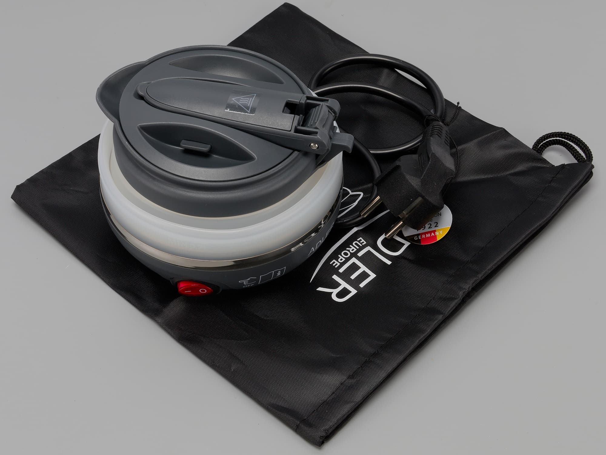 Герой нашего сегодняшнего обзора — ультракомпактный складной чайник Adler AD1279, предназначенный в первую очередь для путешественников. То есть для тех, кому время от времени нужен под рукой легкий и компактный чайник. Например, чтобы кипятить воду в гостиничных номерах.