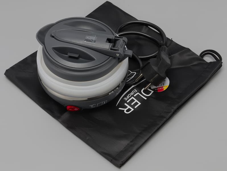 Тем не менее, даже с учетом упомянутых сложностей, прибор нам скорее понравился: чайник исправно кипятит воду, легко переводится из режима хранения в рабочее состояние (и обратно) и весит совсем немного. В целом — выглядит как вполне адекватное решение для тех, кому приходится регулярно ездить в командировку.