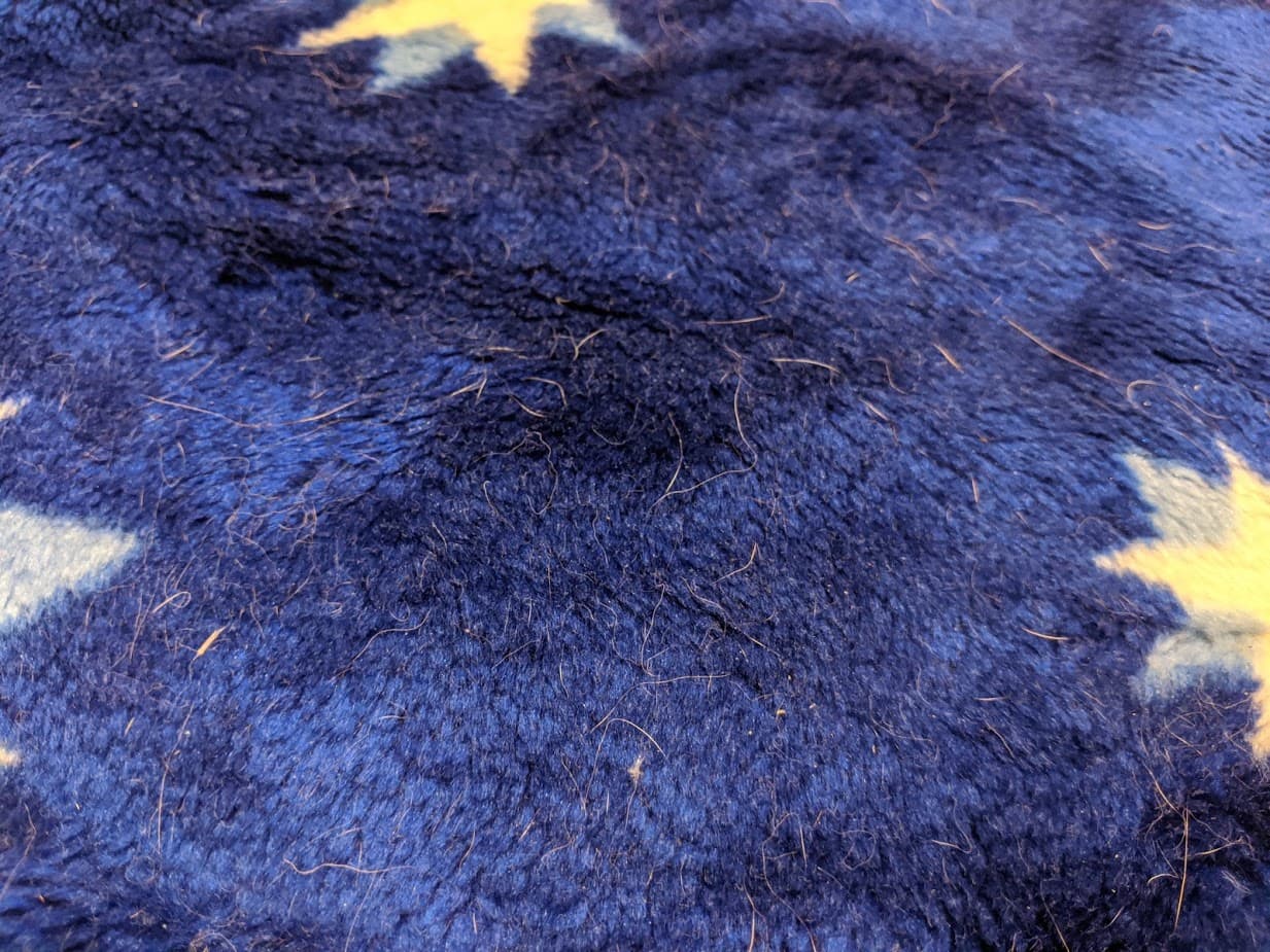 На поверхности пледа осталось незначительное количество шерстинок, но оно не сравнимо с изначальной степенью загрязнения.