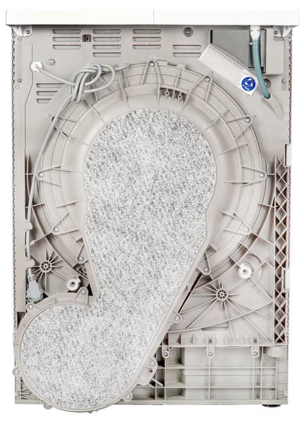 С обрабатываемой в сушилке ткани воздушным потоком сдувается пыль и другие загрязнения: мелкие ворсинки, частицы несмытого моющего средства, шерсть животных и тому подобное. Воздушный фильтр предназначен для задержки и удаления всего этого.