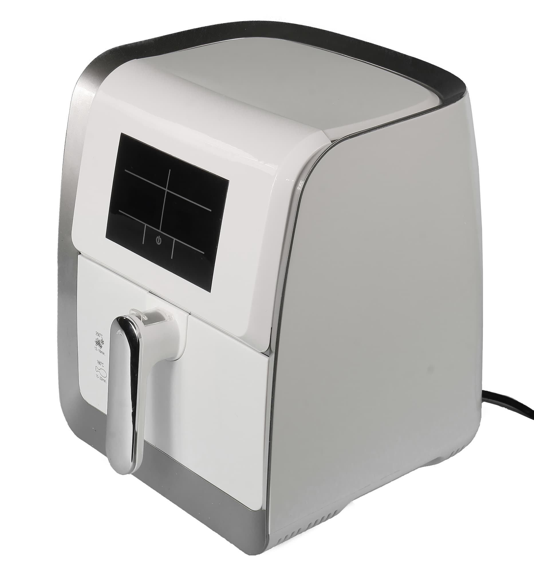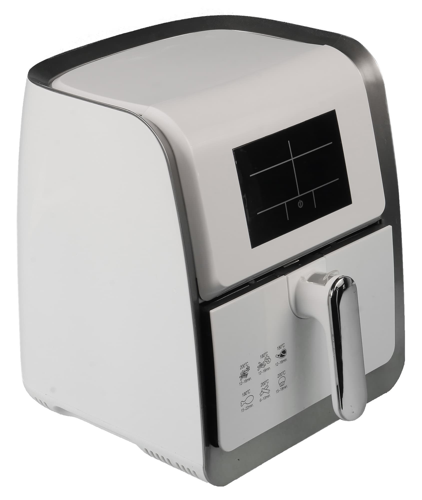 Данный тип устройств предназначен для приготовления блюд под воздействием высокой температуры и конвекции. Конвекционное движение воздуха весьма способствует качественному запеканию любых продуктов. Также к плюсам аэрогрилей принято относить возможность приготовления пищи без добавления масла. Рассматриваемый прибор относится к категории noname. Отличает его относительно компактный размер и наличие электронного табло.