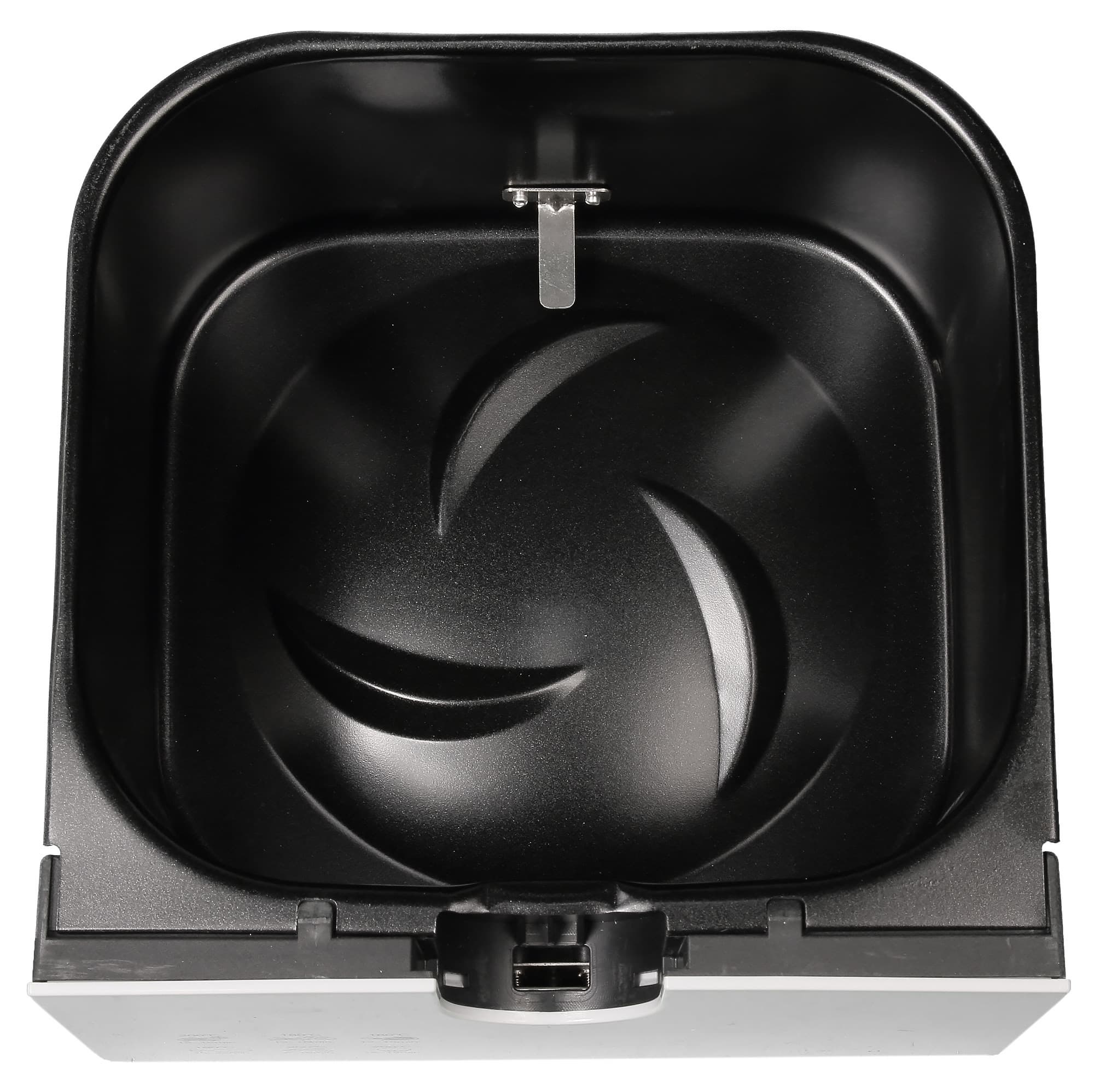 Дно чаши имеет сложную выпуклую форму, призванную, как мы полагаем, обеспечивать наилучшую циркуляцию воздуха. Металлические стенки достаточной толщины, не деформируются и не гнутся. На задней стенке закреплена металлическая подставка для дна съемной корзины.