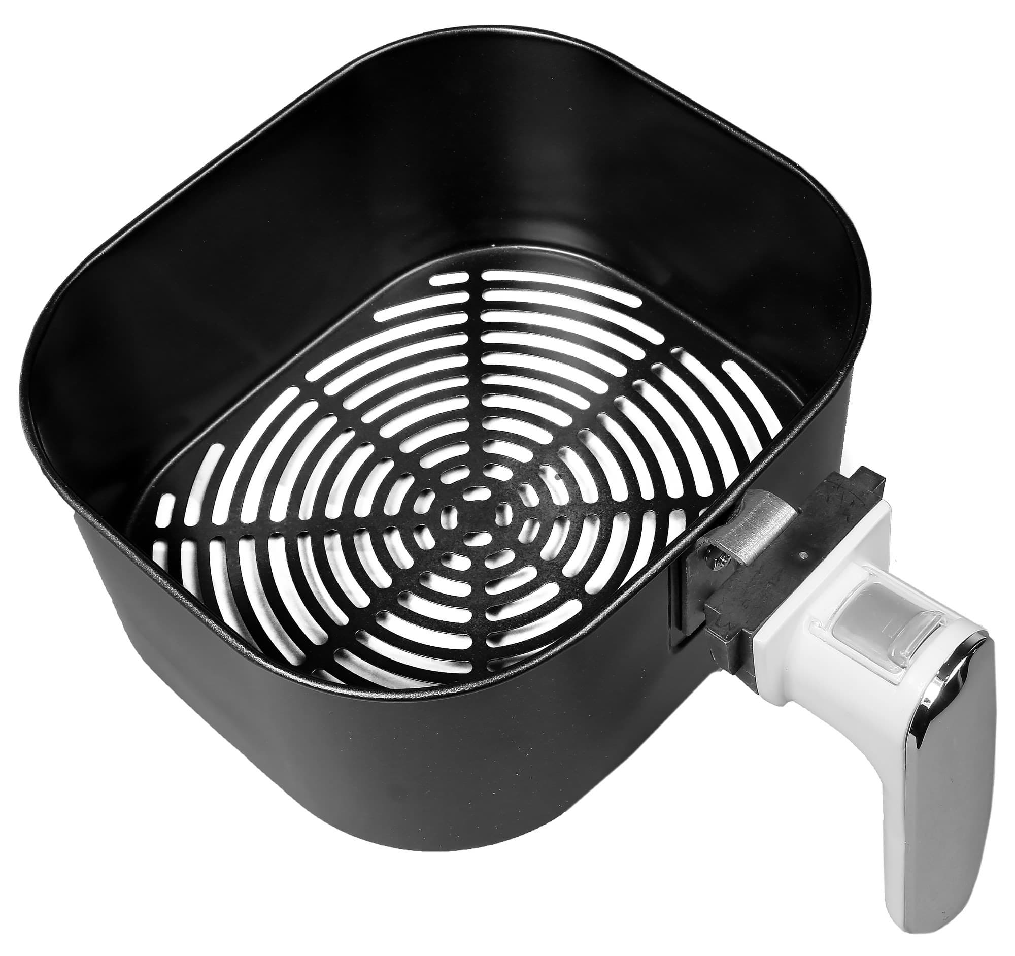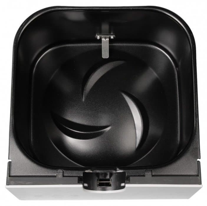 Внутрь корпуса вставляется чаша с размещенной в ней съемной корзиной. Поверхности обоих аксессуаров обработаны антипригарным покрытием. Между корзиной и емкостью имеется зазор примерно в 1-2 см.