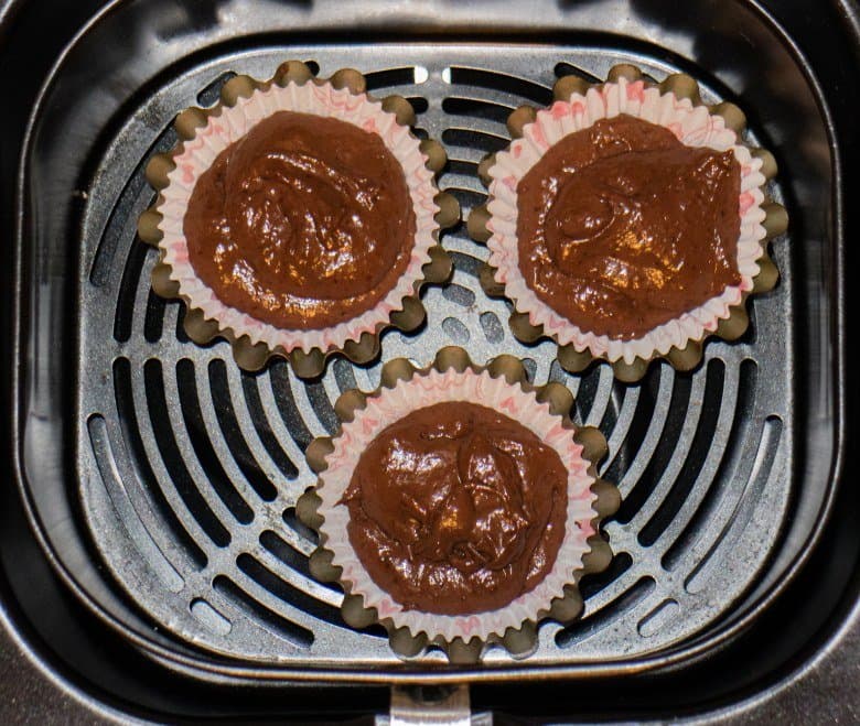Данный рецепт и объем получающегося теста идеально подходят для выпечки 3 или 4 кексов в стандартных формочках. В корзину свободно поместятся 4 формы.
