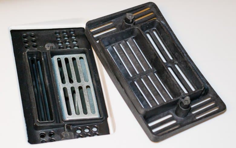 Корпус прибора и его внутреннюю часть следует протирать мягкой влажной, а затем сухой тканью или губкой. За все время экспериментов и внешняя, и внутренняя часть аэрогриля остались чистыми. Нагревательный элемент не был забрызган жиром или каплями сока, который выделялся при запекании мясных и рыбных блюд. Несколько пятен на верхней части внутренней камеры были без усилий удалены с помощью влажной мыльной, а затем чистой и сухой ткани.