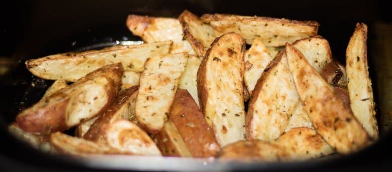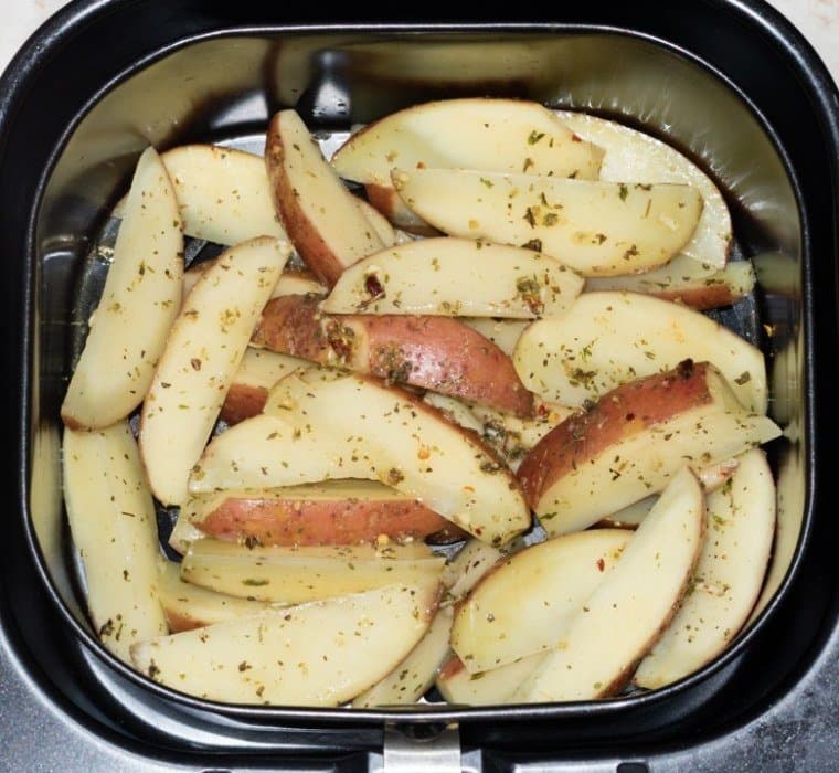 Выпекали 15 минут на 160 °C. Достали корзину, перемешали картофель и продолжили тепловую обработку в течение еще 5 минут.