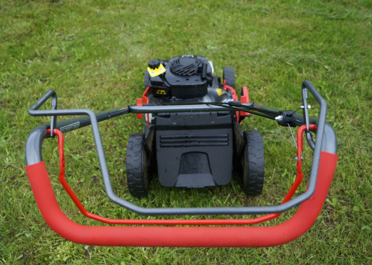 Конечно, при смене положения рукояти поменяются местами рычаги «газа» и хода, но перепривыкнуть — дело нескольких минут. Зато оперировать газонокосилкой может человек любого роста, и никакая специальная регулировка высоты рукояти не требуется, это лишь усложнило бы конструкцию.